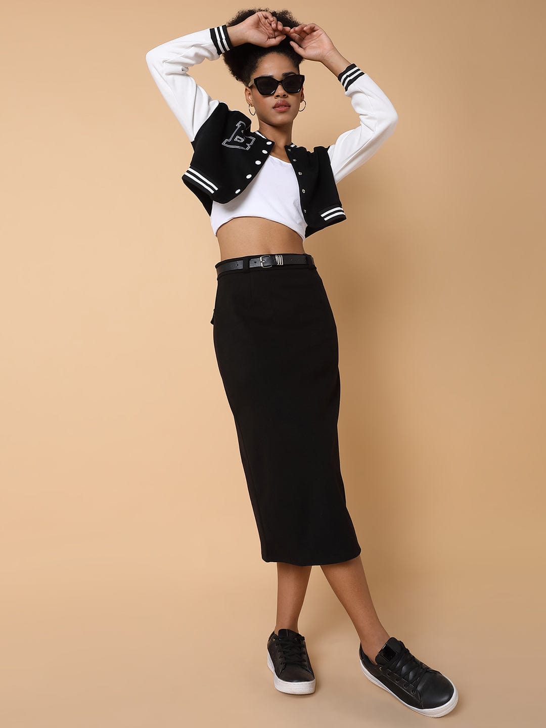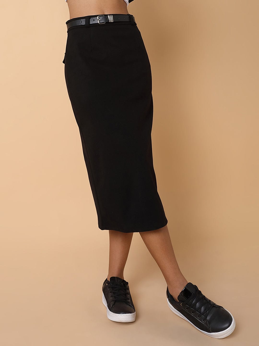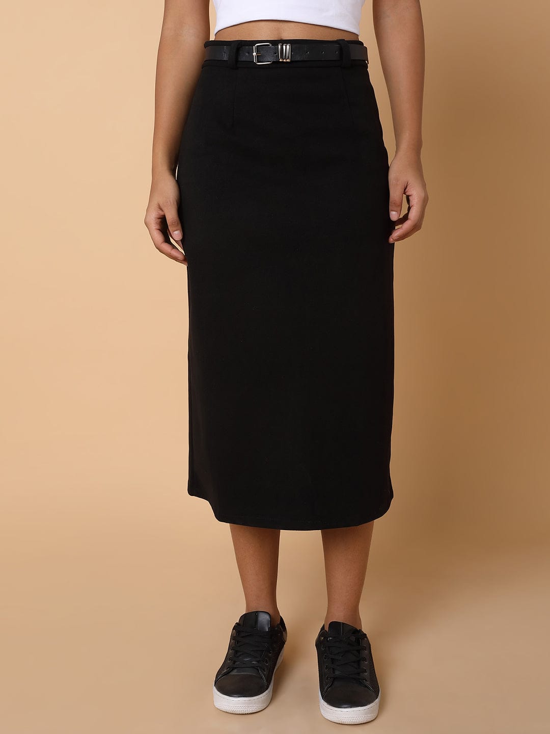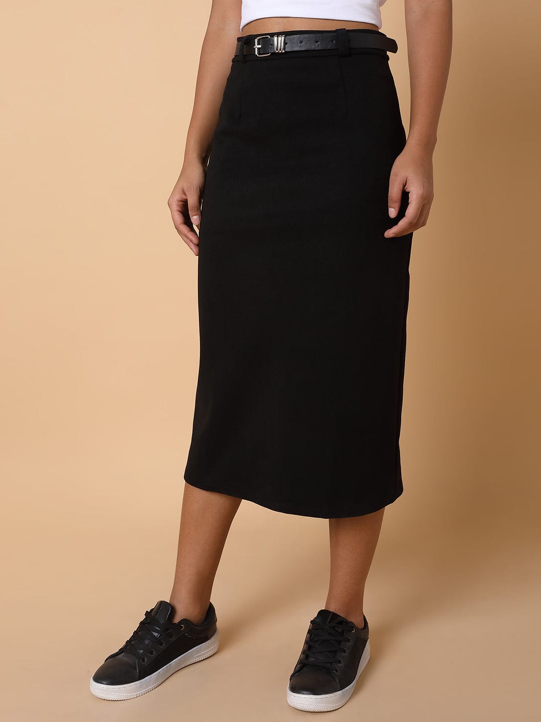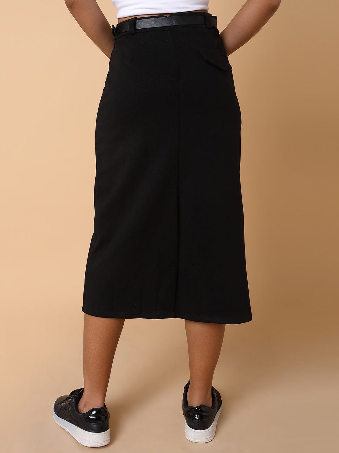 Elevate your wardrobe with our Women Solid Black Midi Skirt with Belt, a versatile piece that effortlessly combines style and comfort. Perfect for any occasion, this skirt is designed to make you look chic while providing a flattering fit.