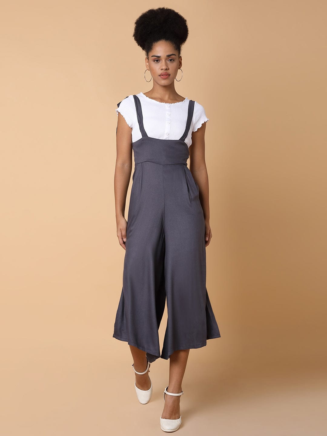 Discover comfort and style with our Women Solid Grey Capri Jumpsuit, perfect for any occasion. This versatile piece combines practicality with chic appeal, making it a must-have in your wardrobe.