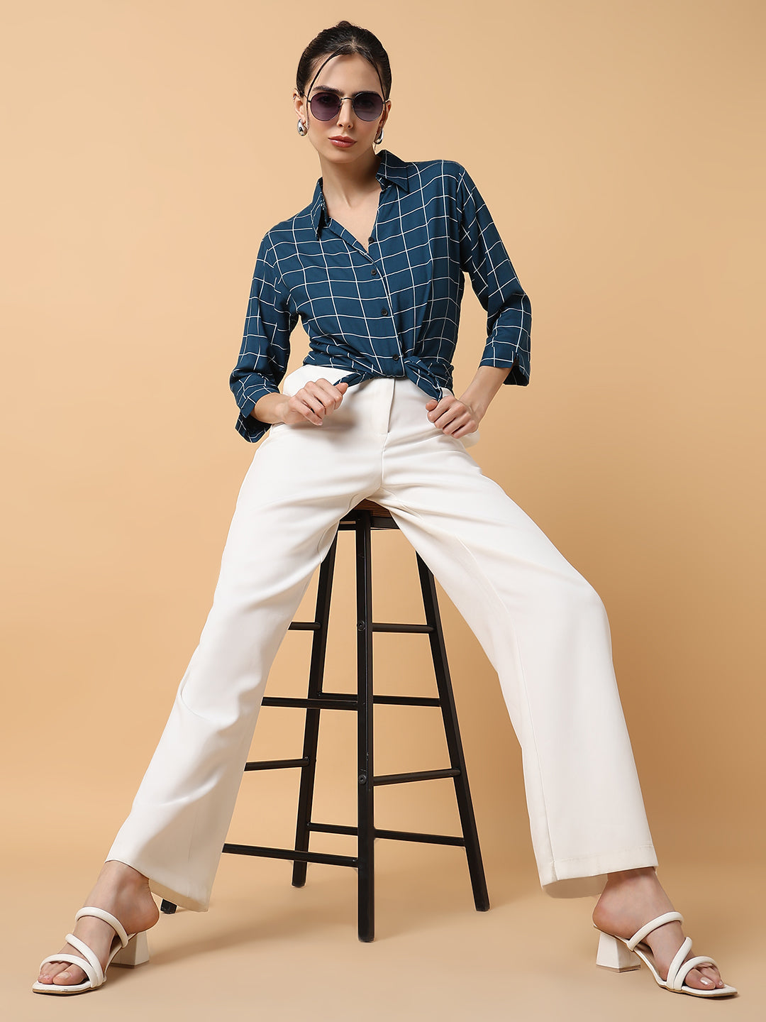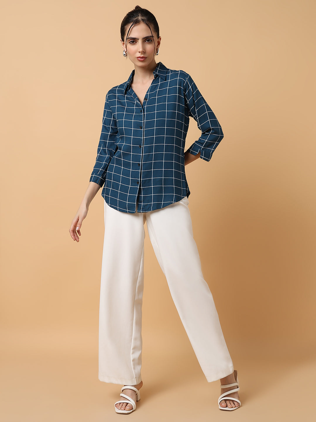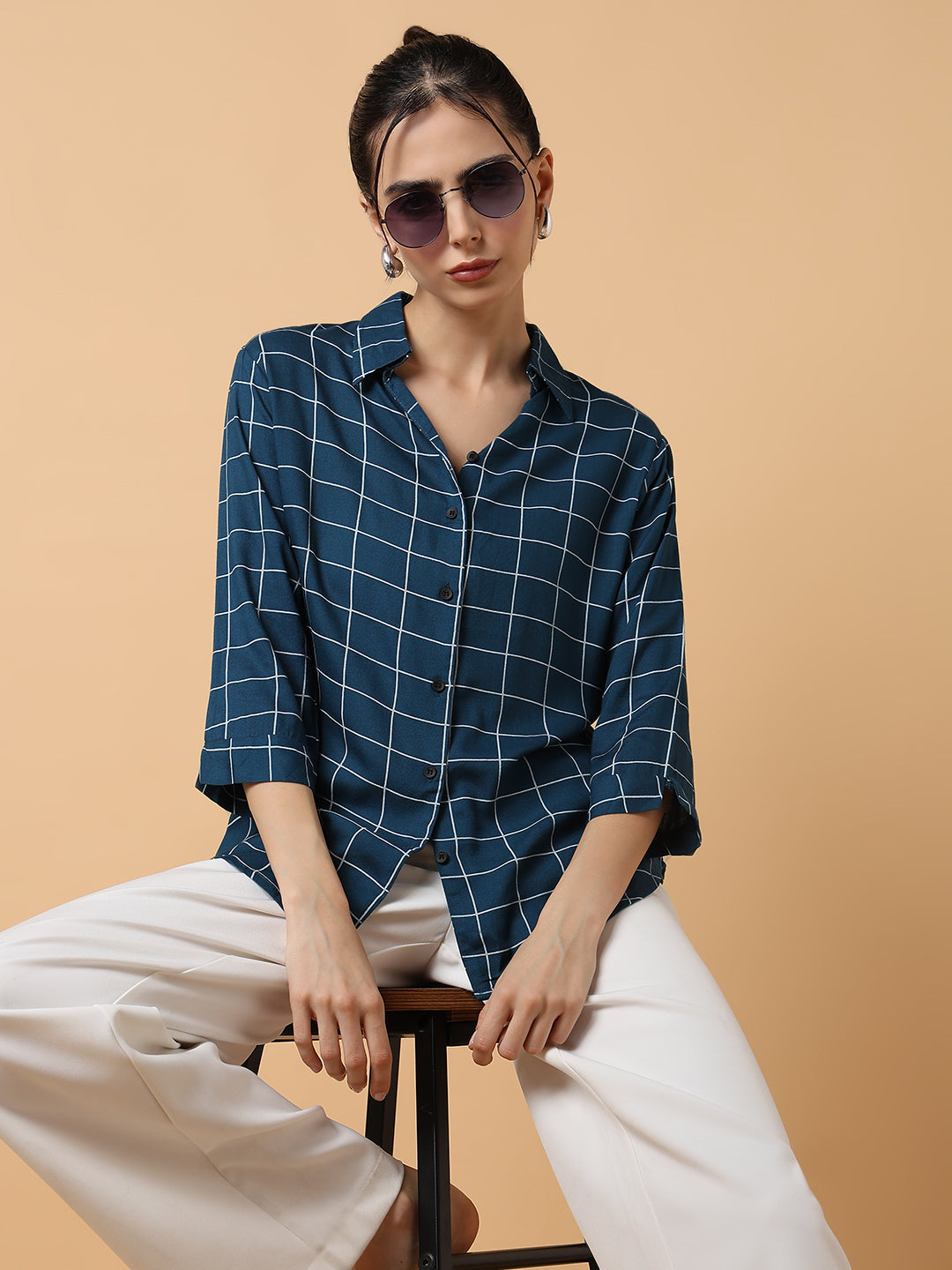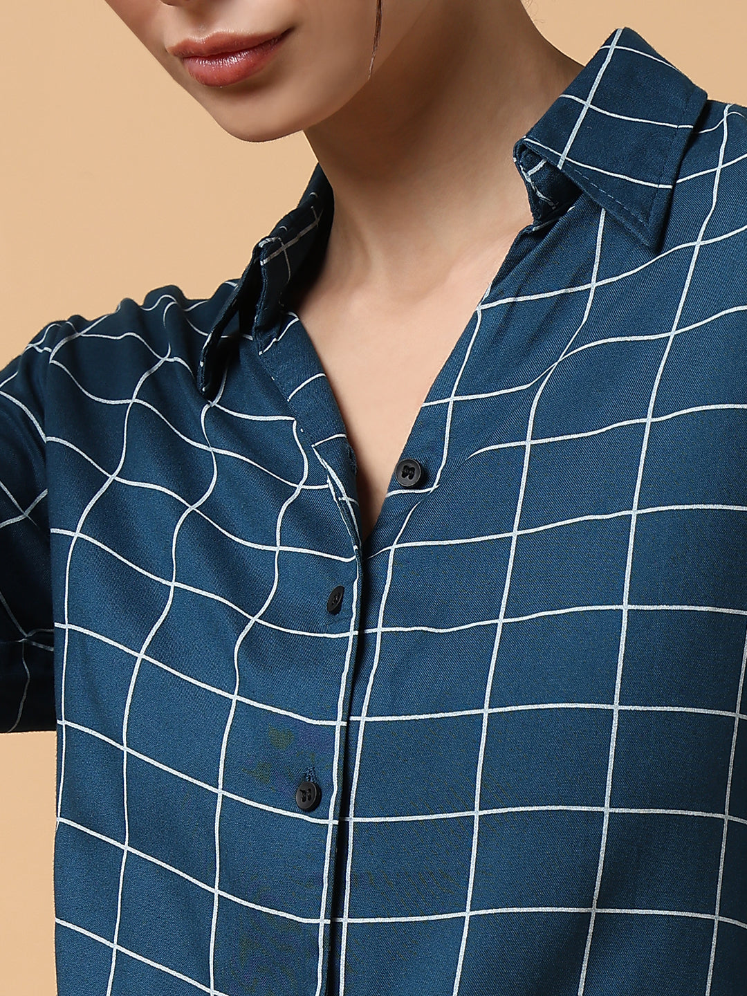 To maintain the quality and longevity of your Women Checked Teal Shirt, machine wash in cold water with similar colors. Avoid bleach and tumble drying to preserve the fabric's integrity.