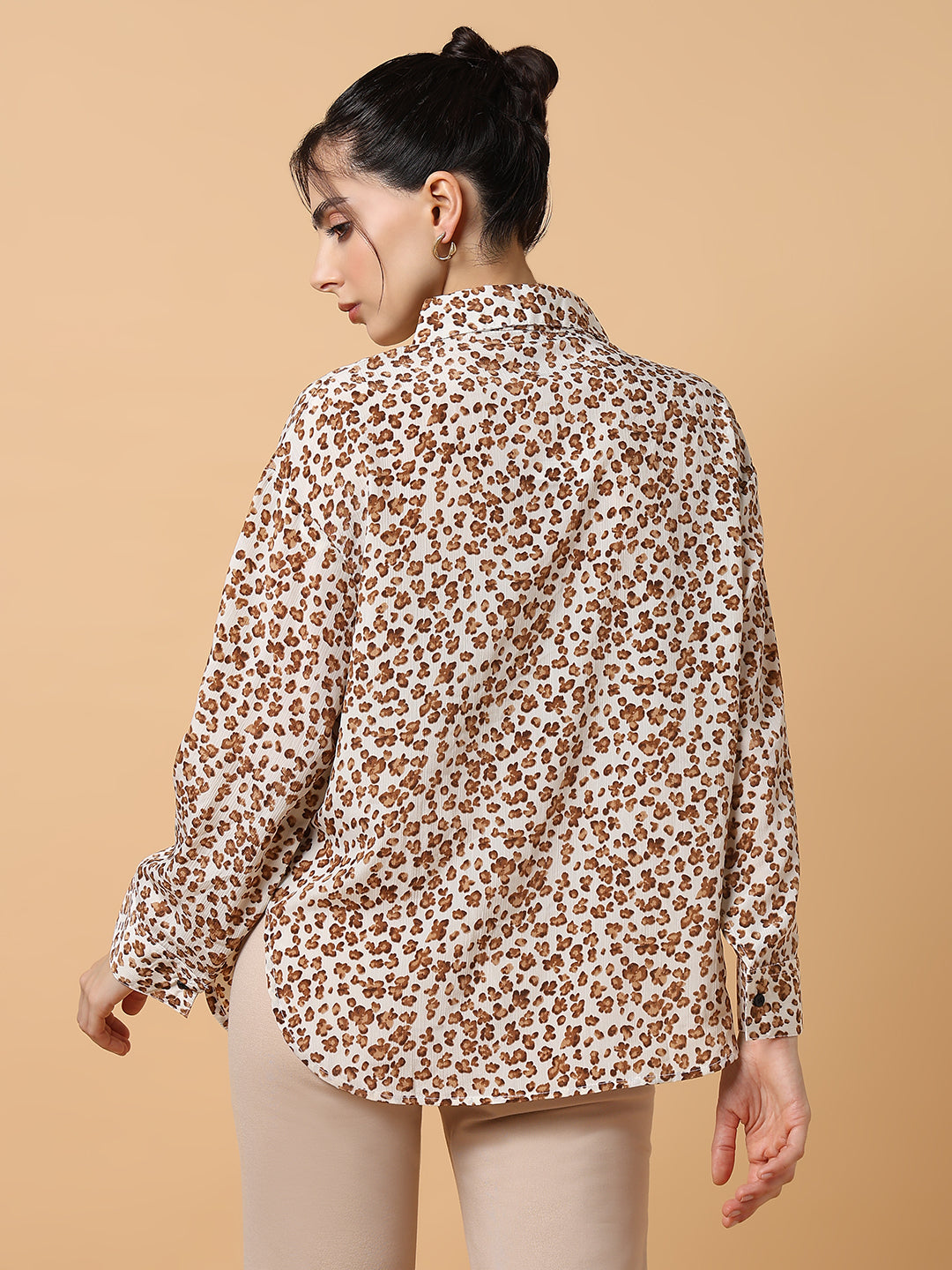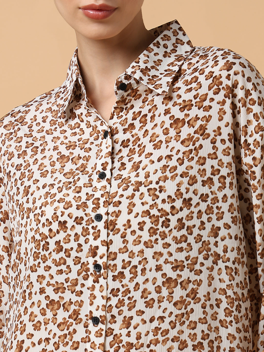 Women's Off White Comfort Slim Fit Floral Opaque Printed Casual Shirt