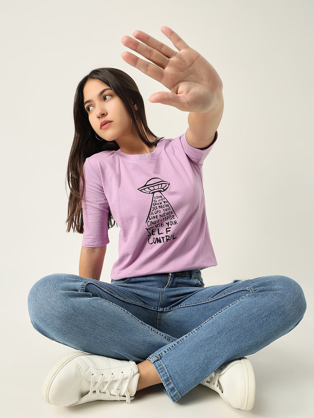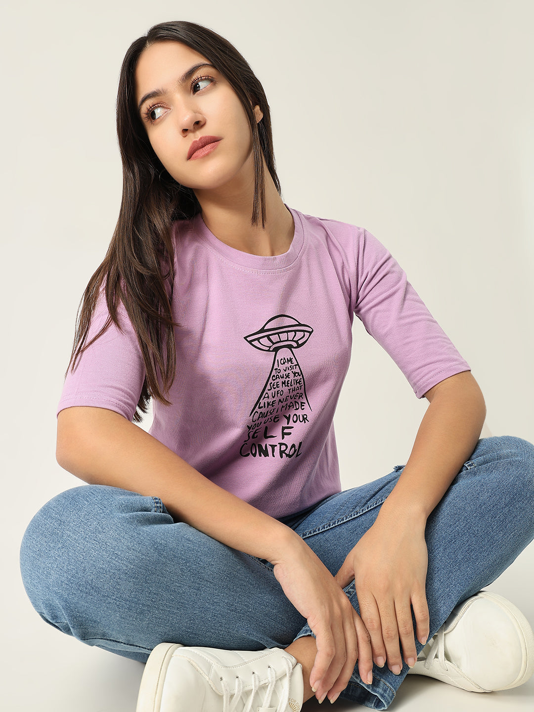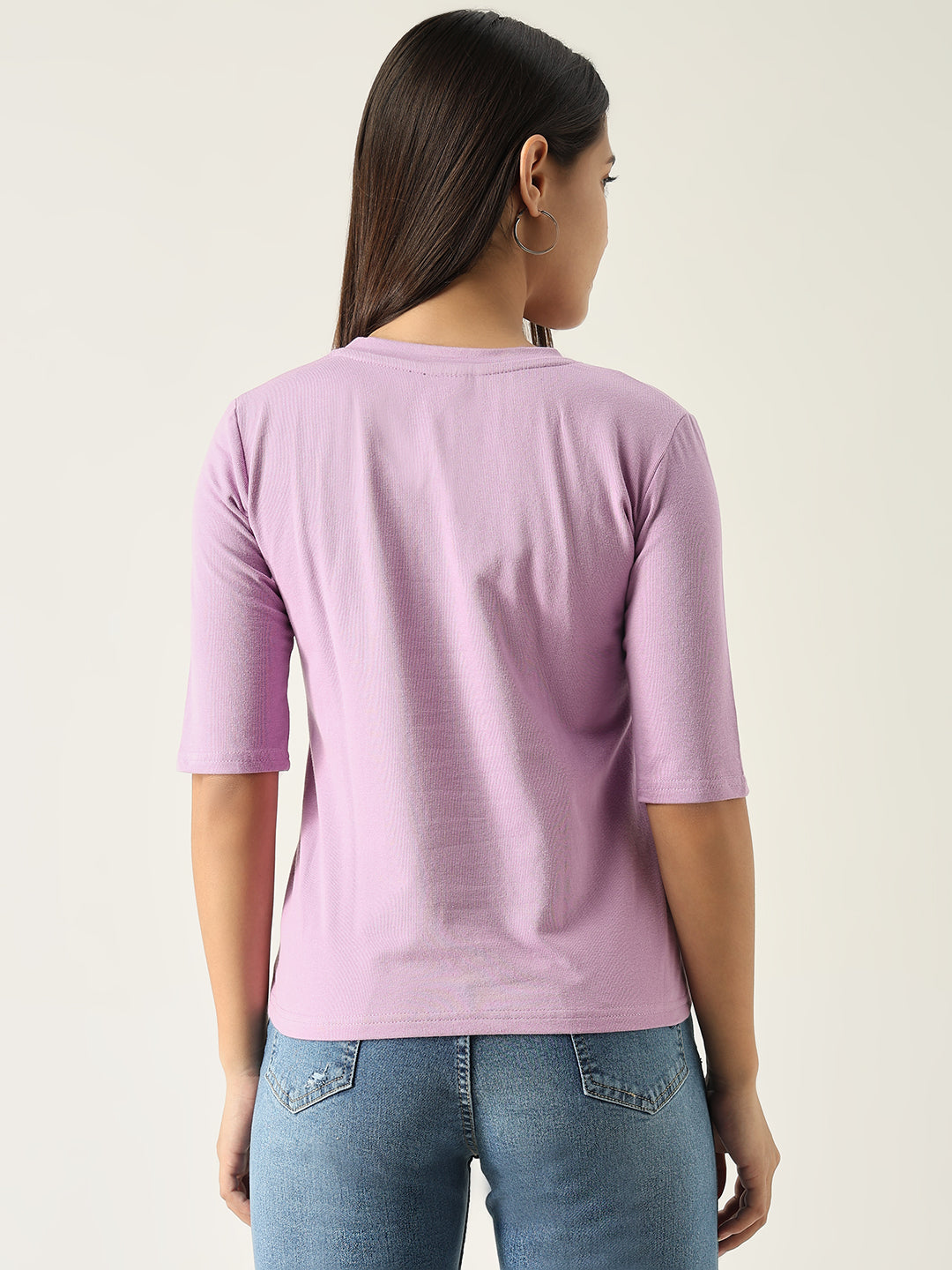 Women's Lavender Typography Printed Round Neck Cotton Slim Fit T-Shirt