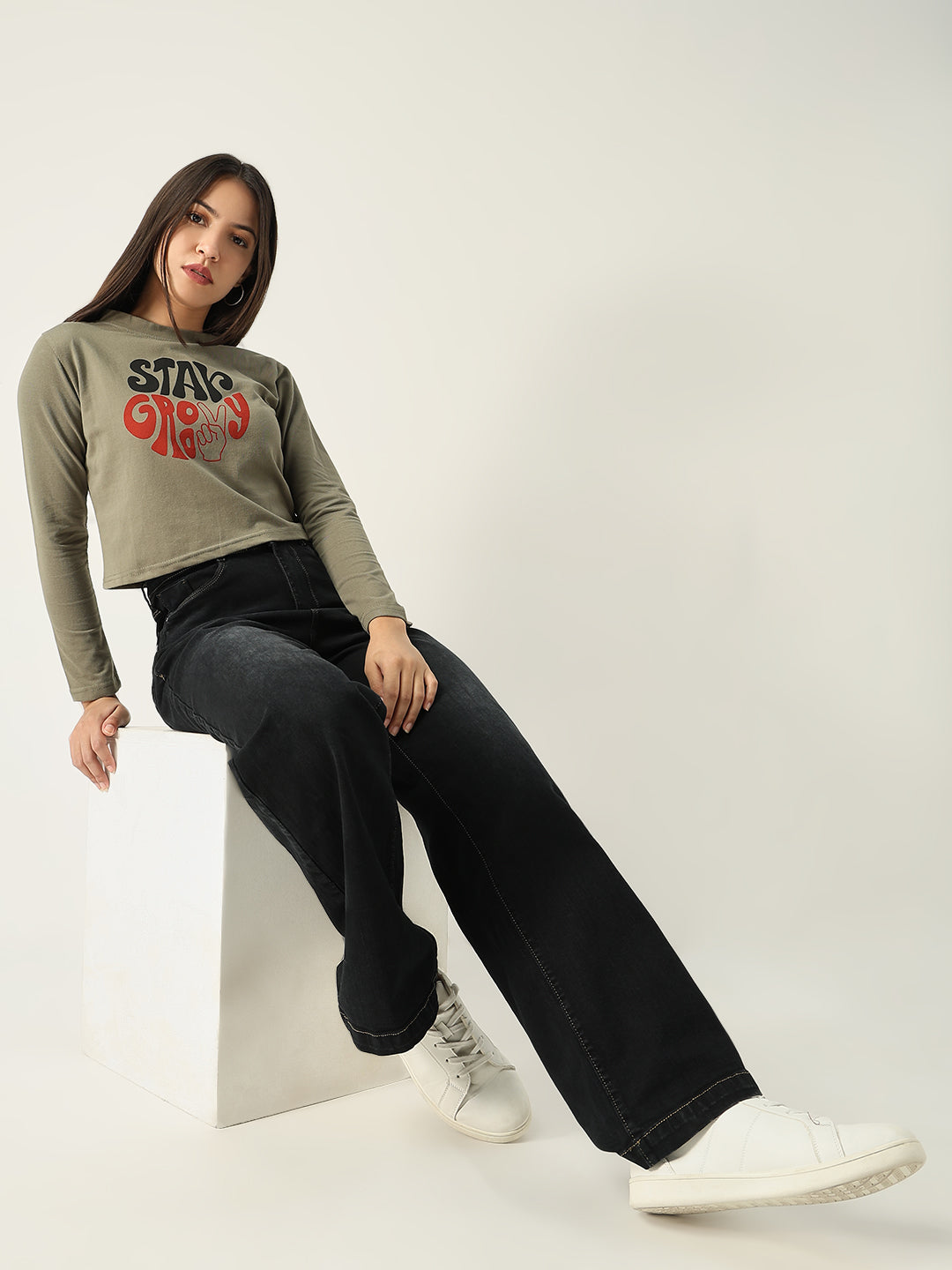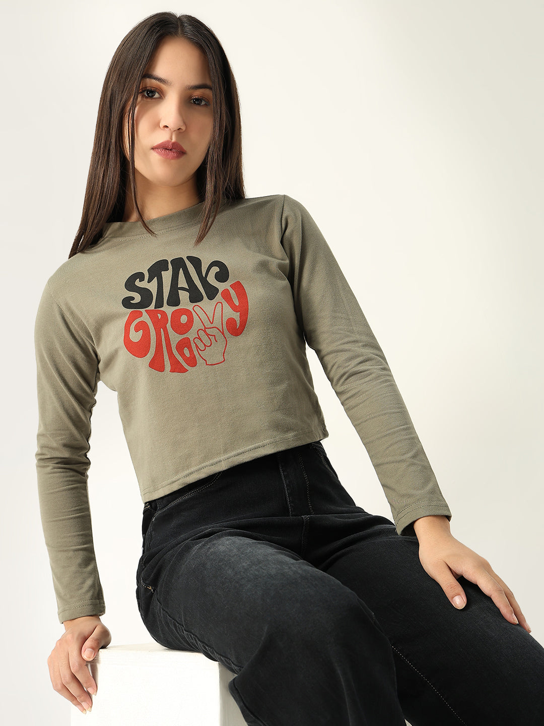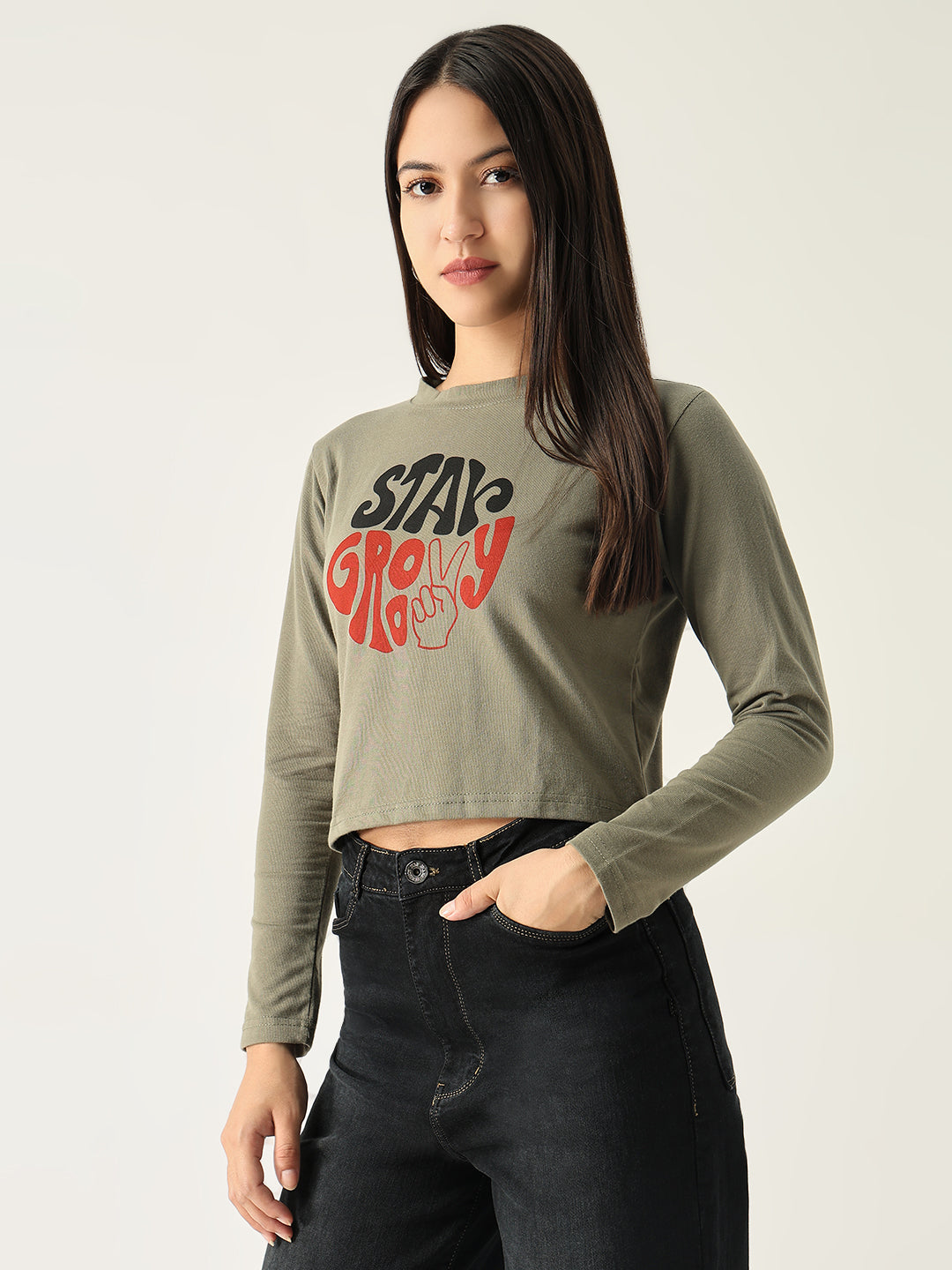 To keep your Women Graphic Olive Crop T-Shirt looking fresh and vibrant, machine wash in cold water and tumble dry on low. Avoid bleach to maintain the quality of the graphic print.