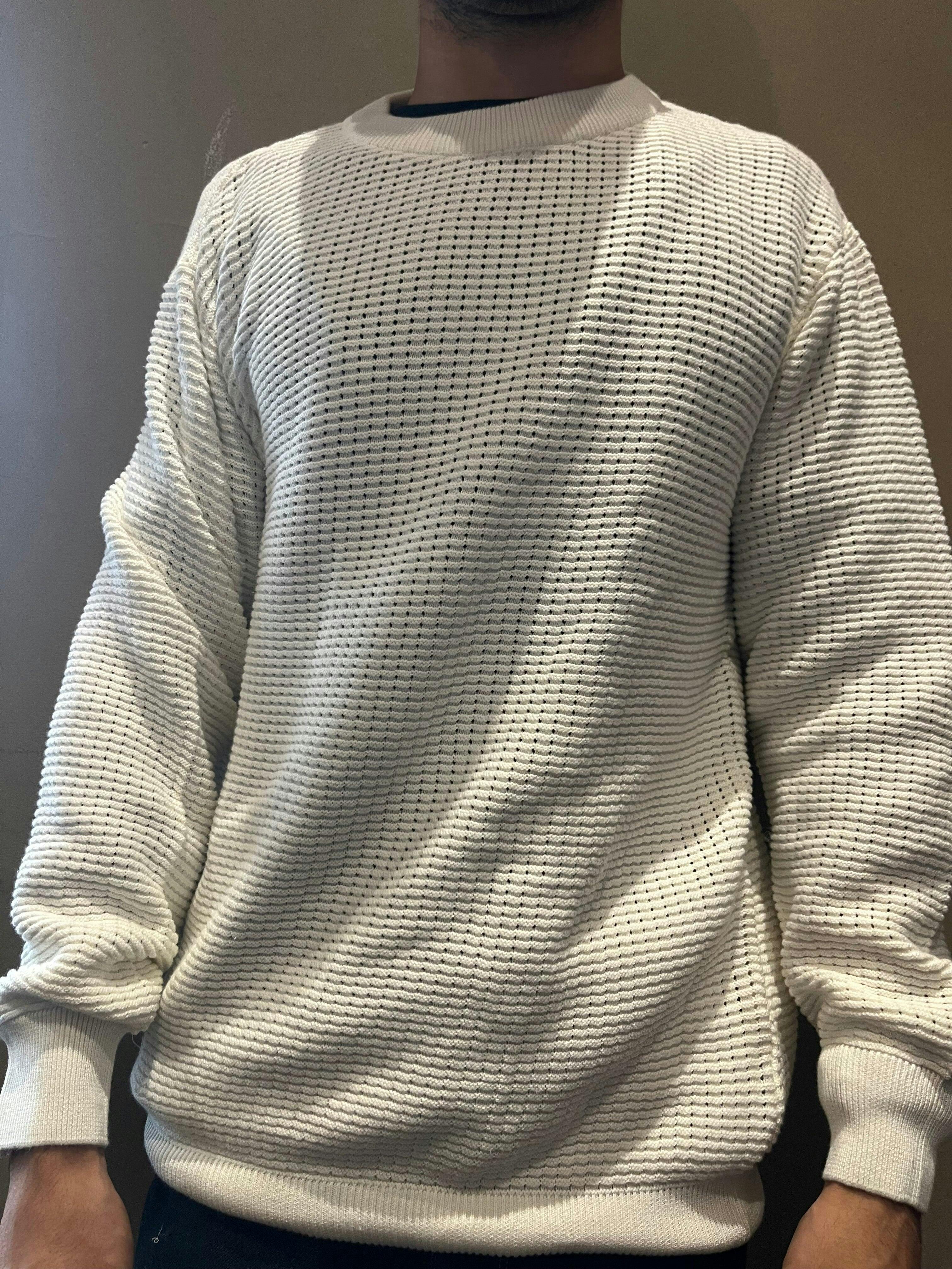 Elevate your winter wardrobe with our Men's White Round Neck Sweater. Crafted from high-quality cotton, this stylish pullover combines warmth and comfort, making it a perfect addition to your casual outfits. The full sleeves and ribbed design add a touch of sophistication, ideal for both everyday wear and special occasions.