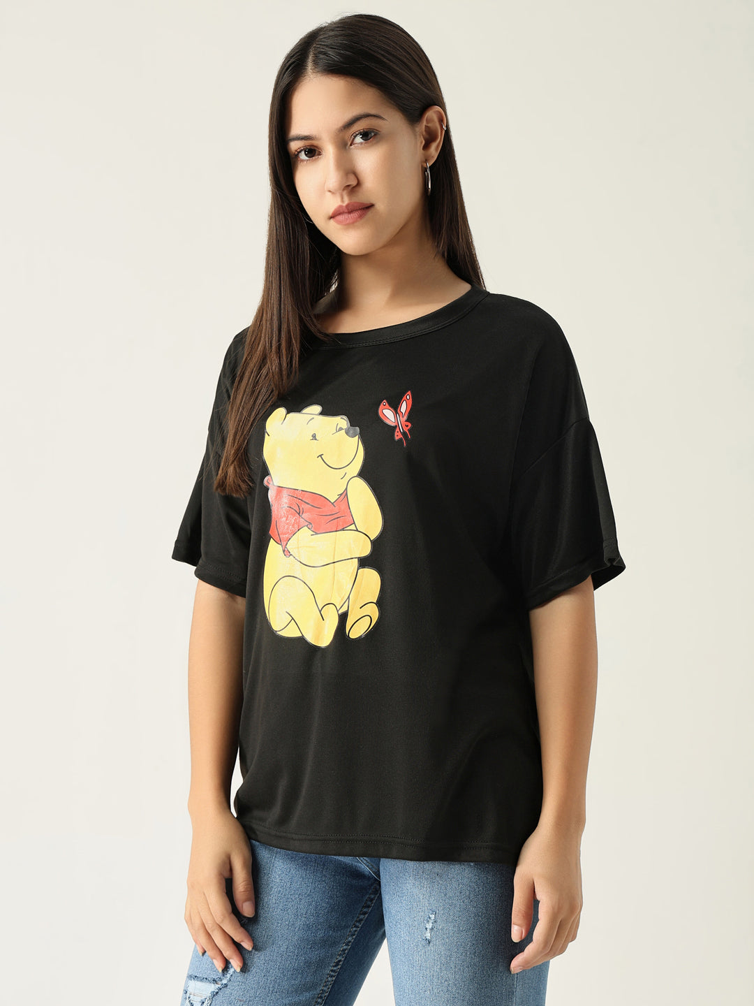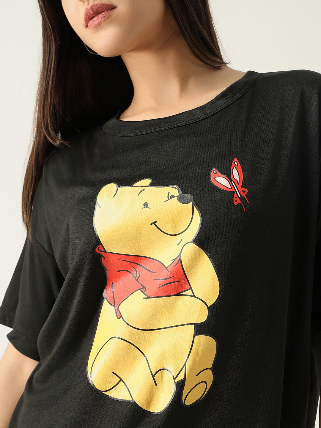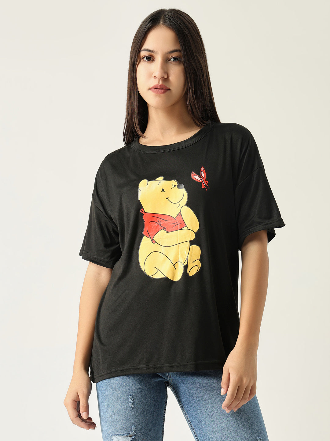 To maintain the quality of your Women Graphic Black T Shirt, machine wash it in cold water and tumble dry on low. Avoid bleach to keep the graphic vibrant and fresh.