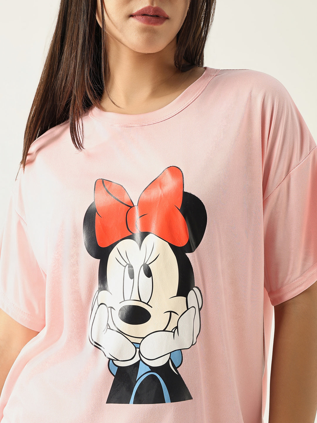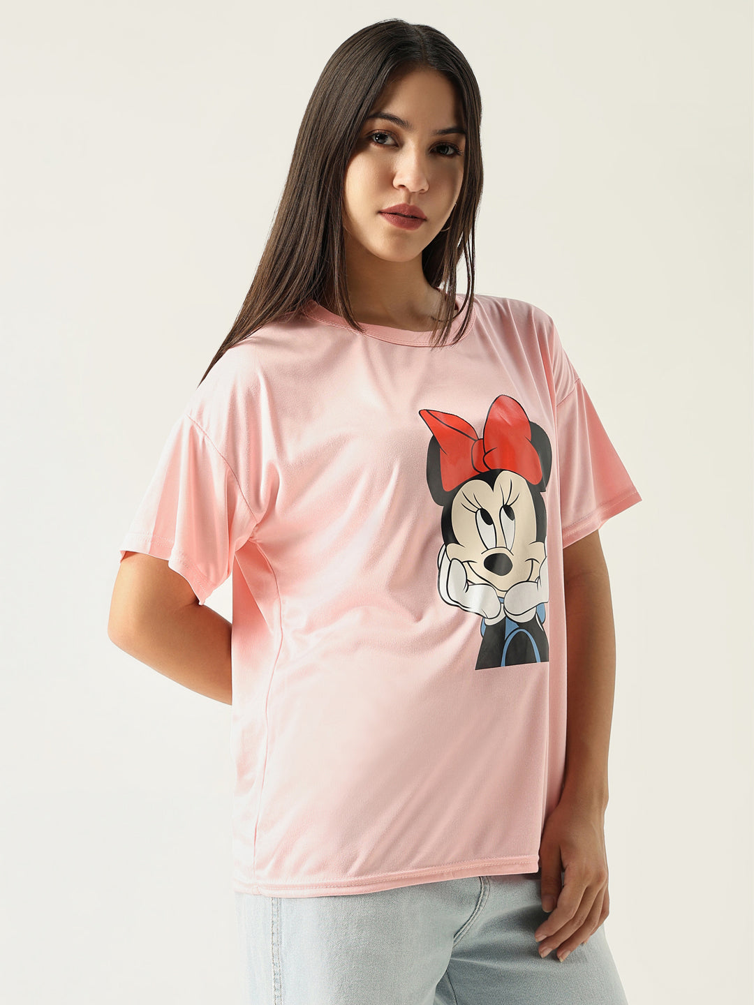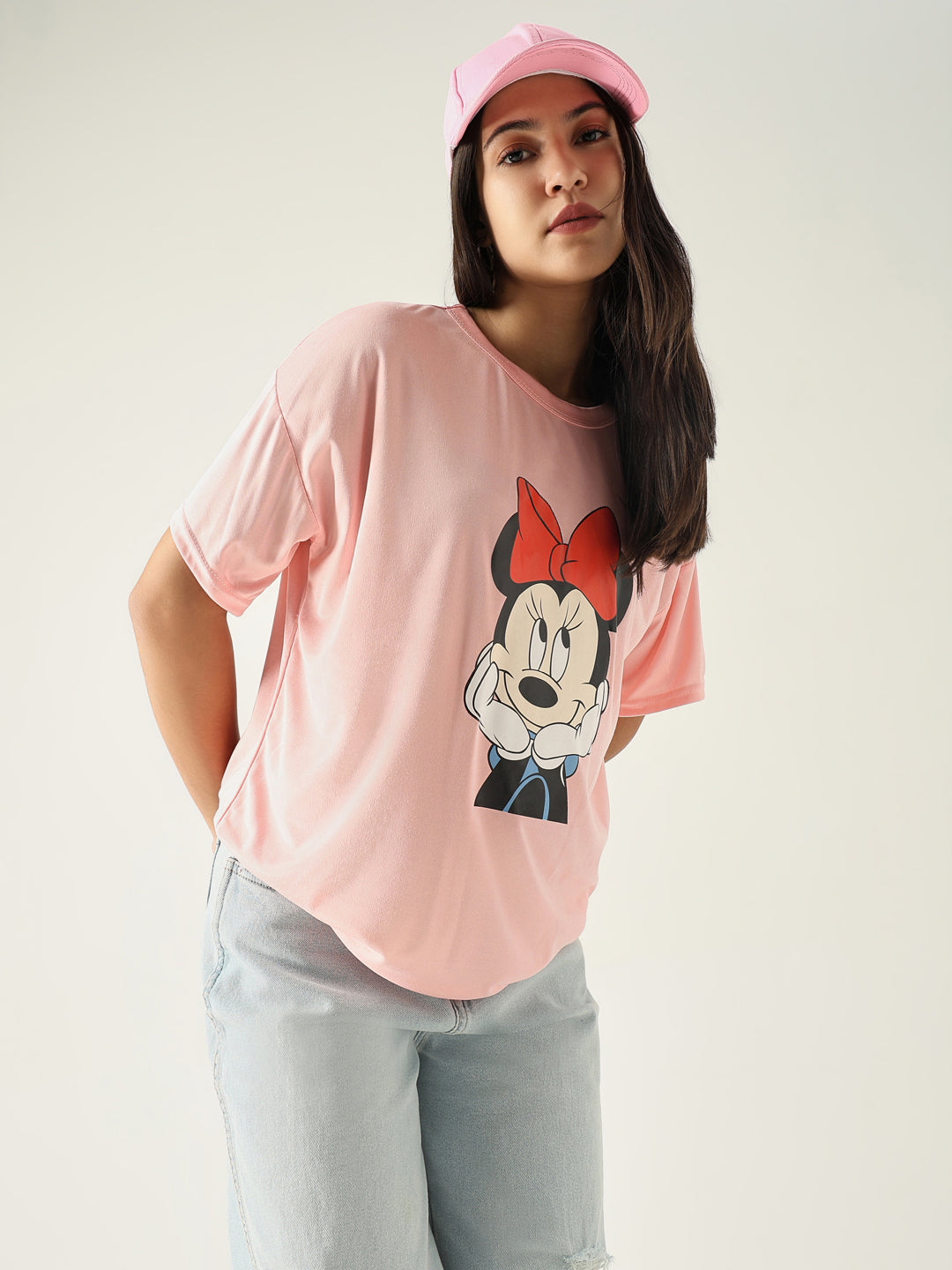 Women's Pink Graphic Printed Round Neck Cotton Relaxed Fit T-Shirt