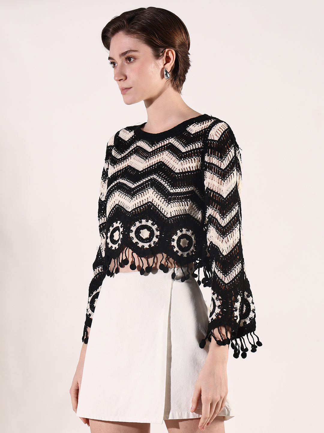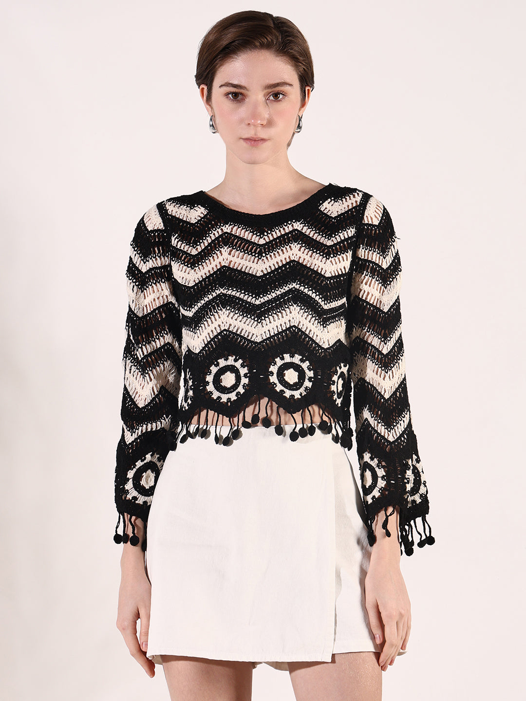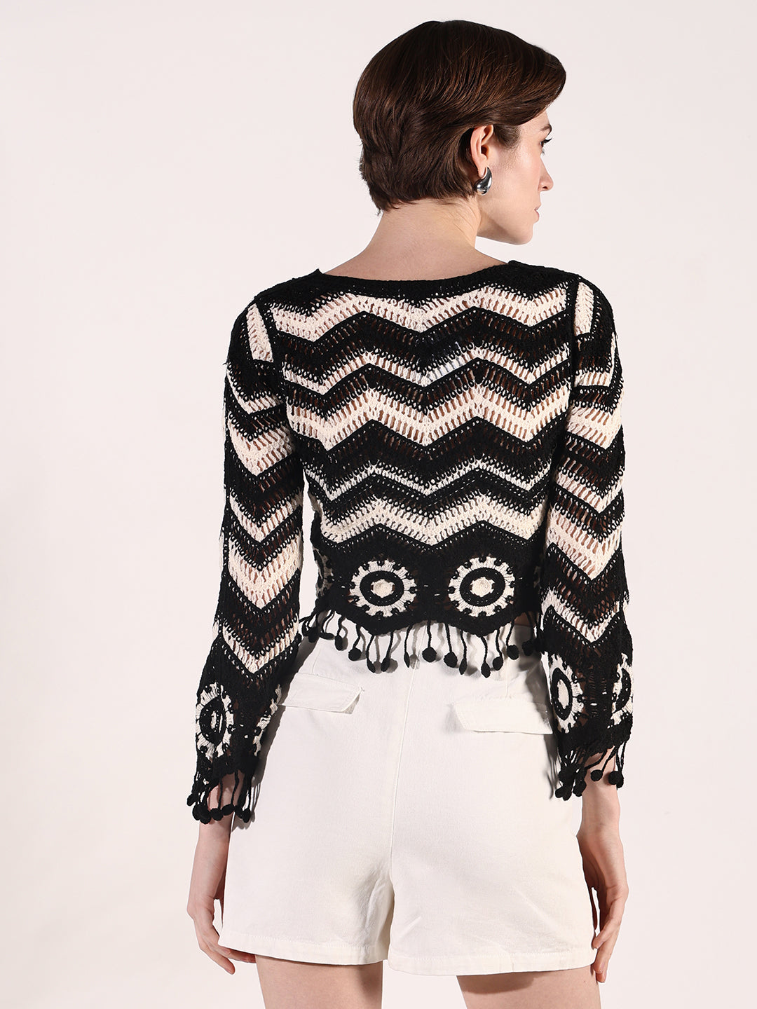 Women's Black Geometric Crochet Top