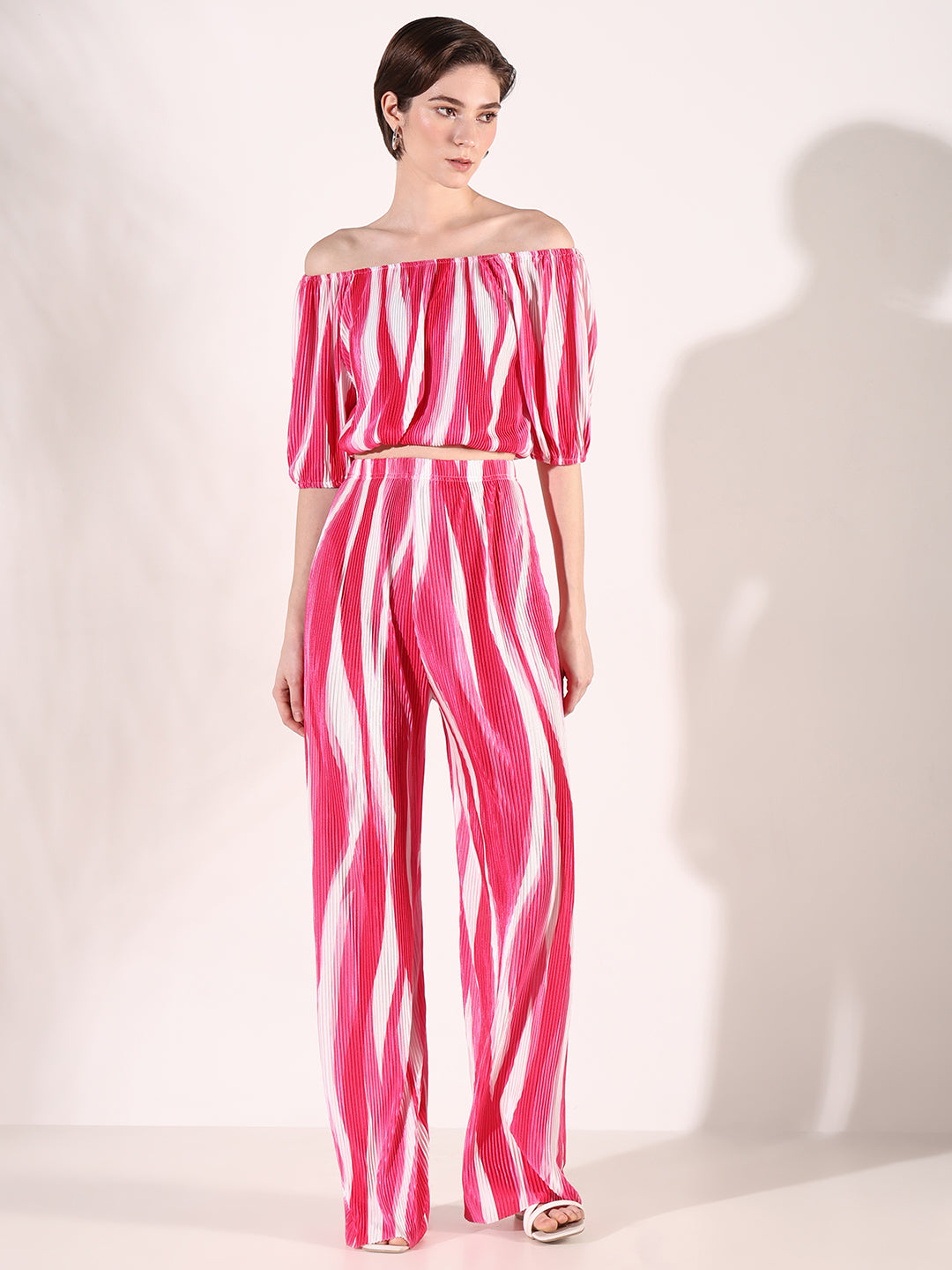 Introducing the Women's Printed Pink Cotton Co Ords Set, a must-have addition to your summer wardrobe. This fashionable ensemble includes a stylish top and trousers, designed for ultimate comfort and versatility. Perfect for a casual day out or a stylish evening event, this co-ord set boasts a chic off-shoulder design and vibrant pink printed patterns that make a statement.