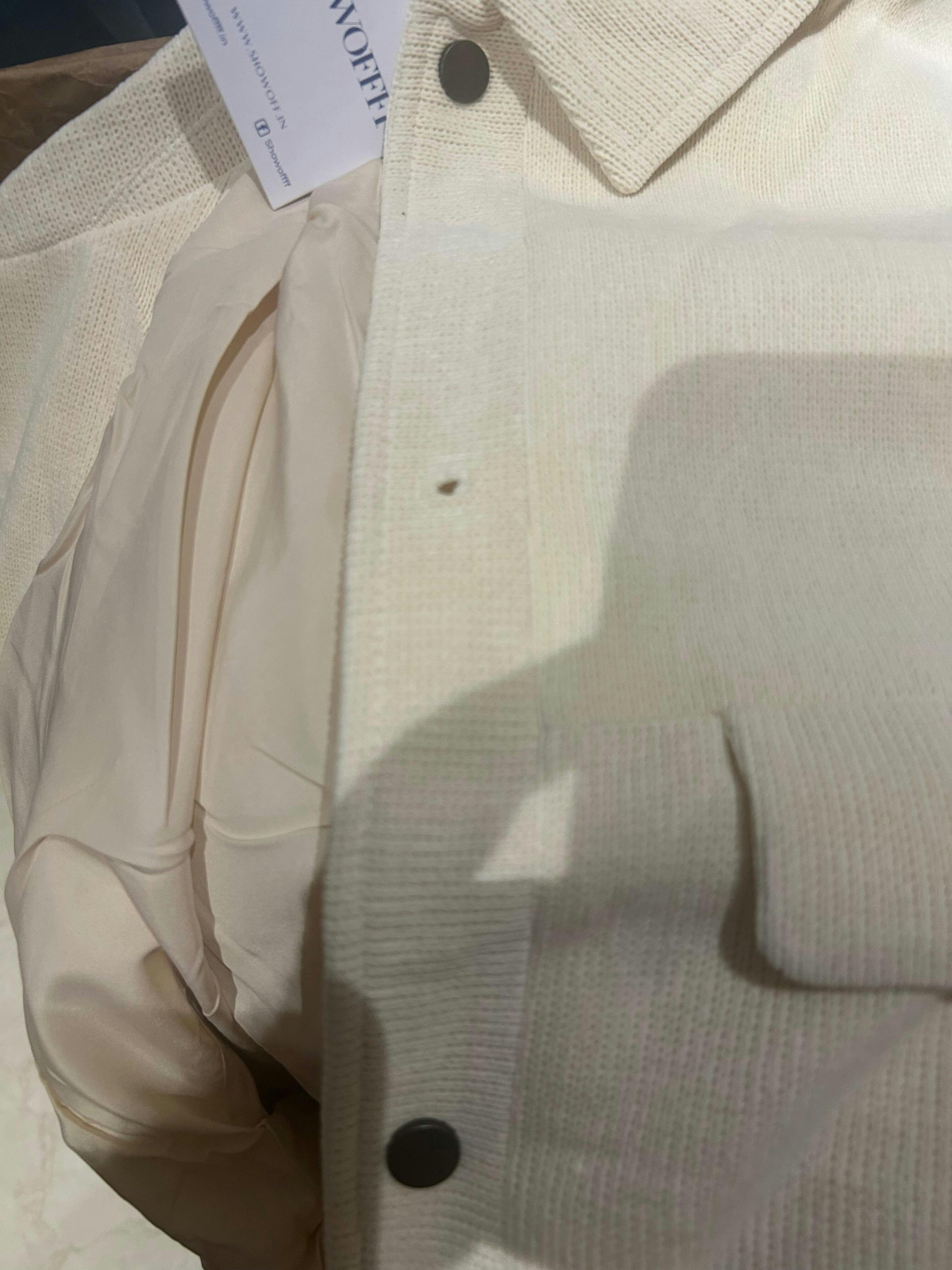 • Features a classic shacket design with a solid cream color that complements various outfits.
