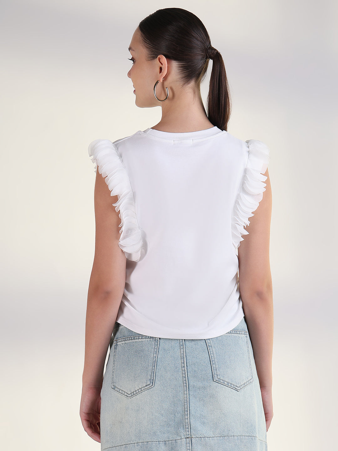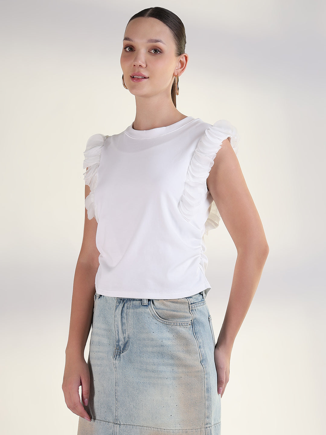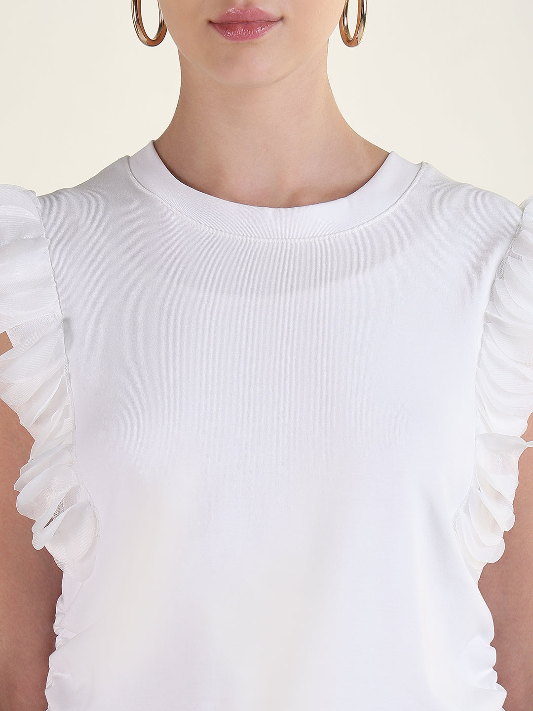 Women's White Flutter Sleeves Solid Top