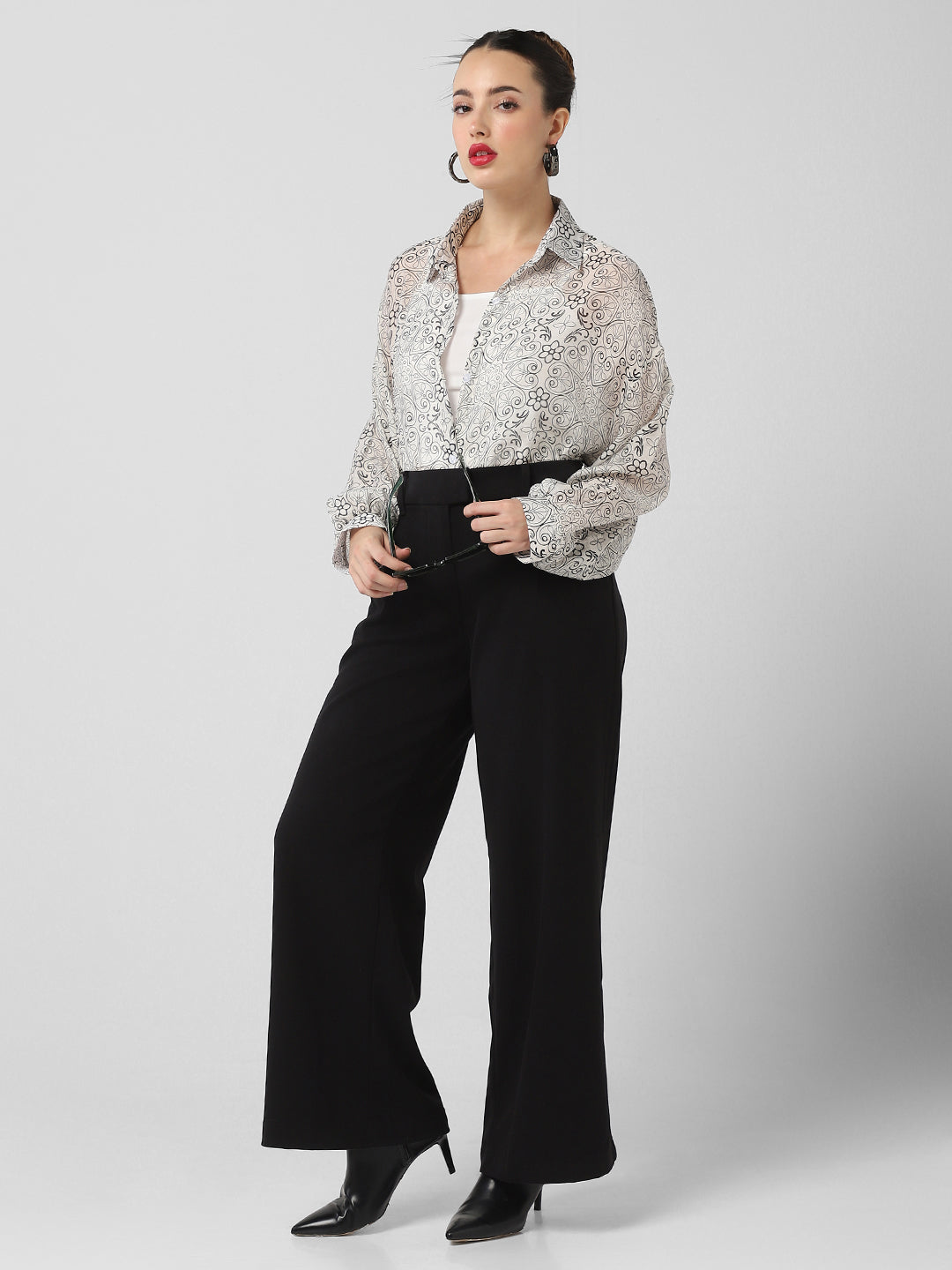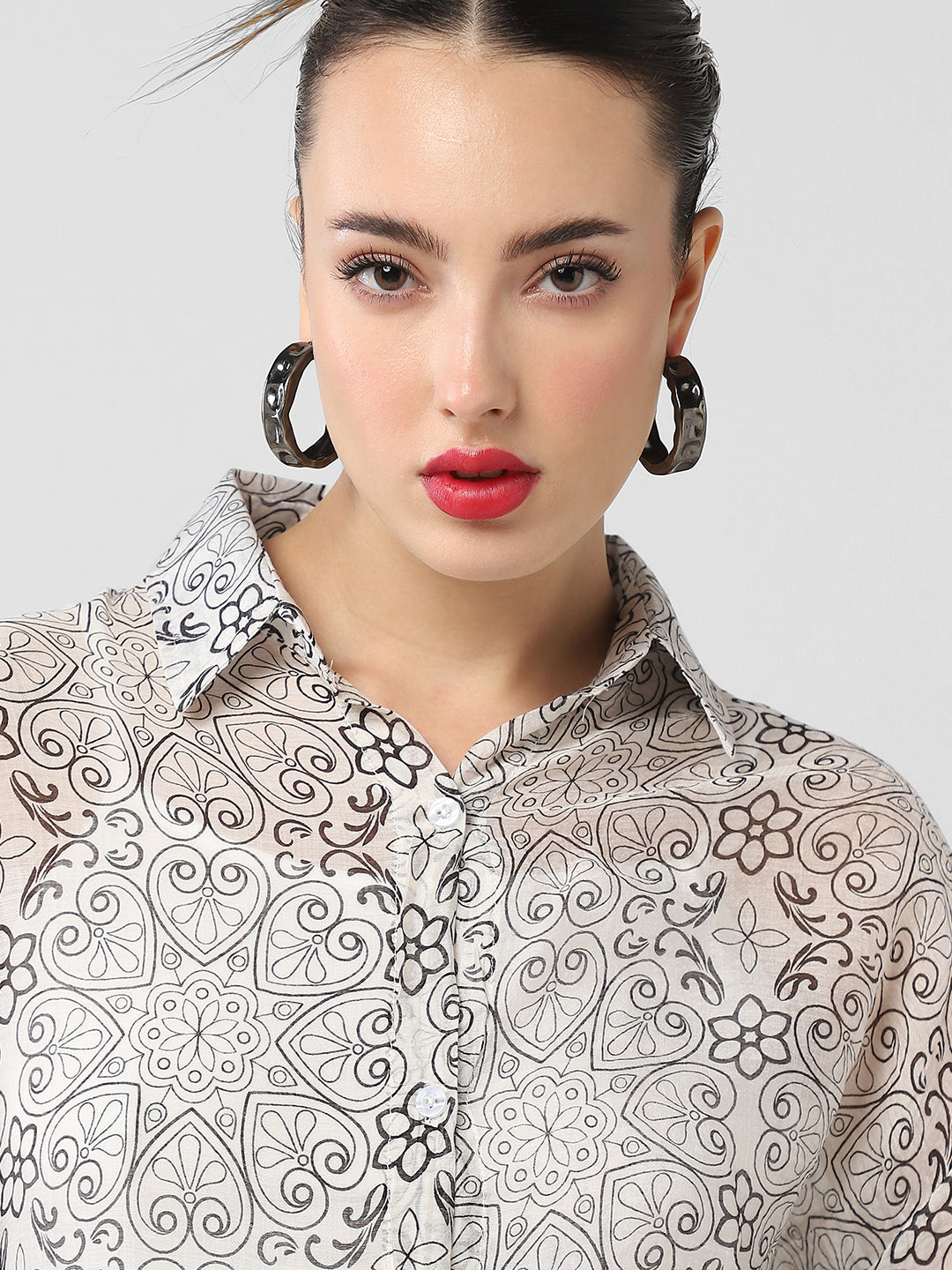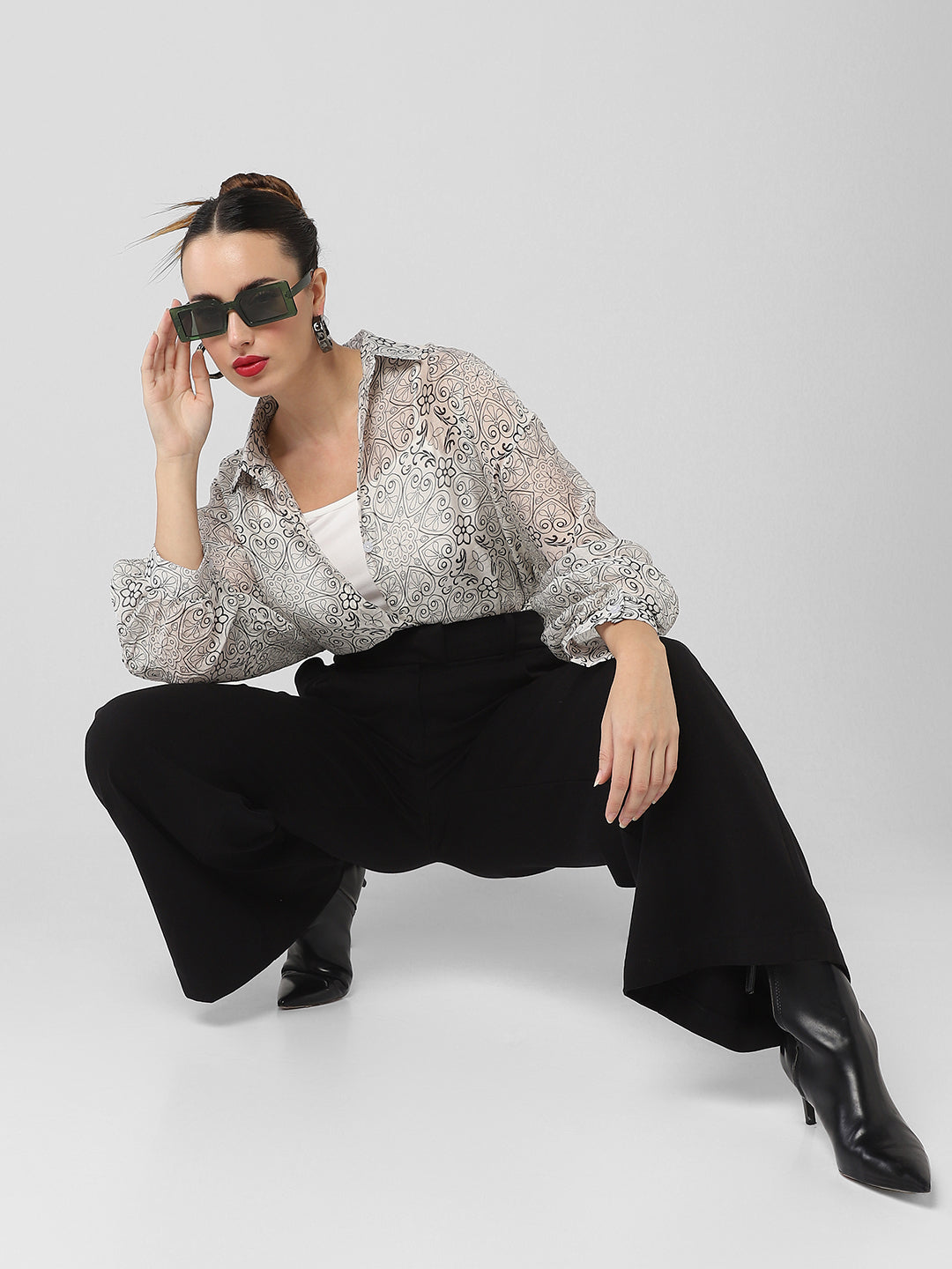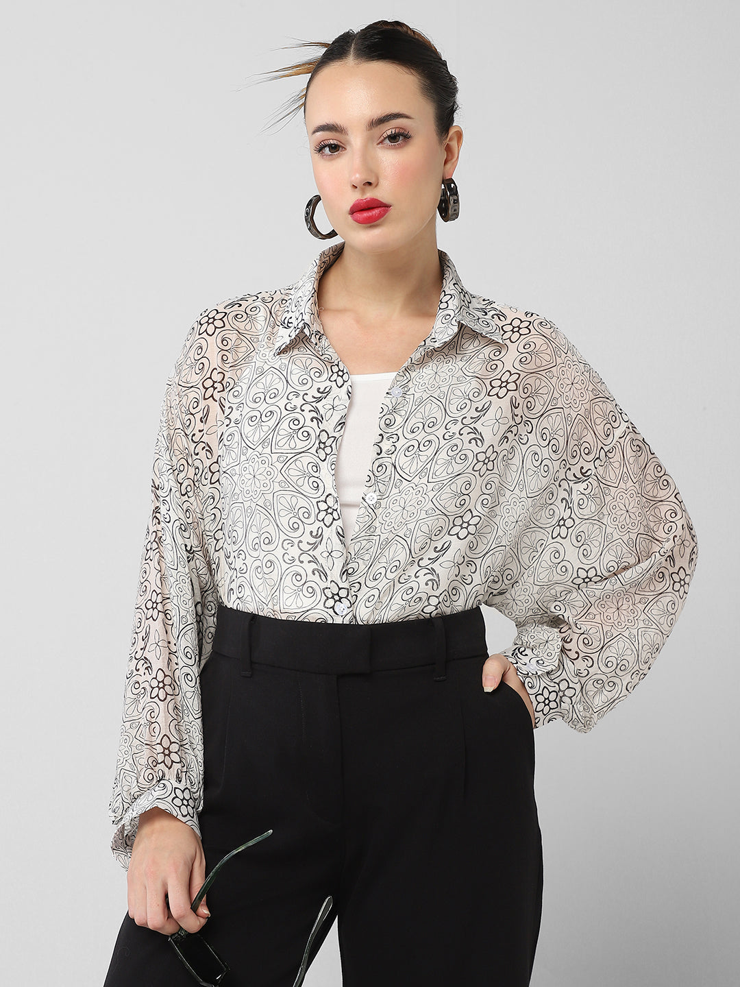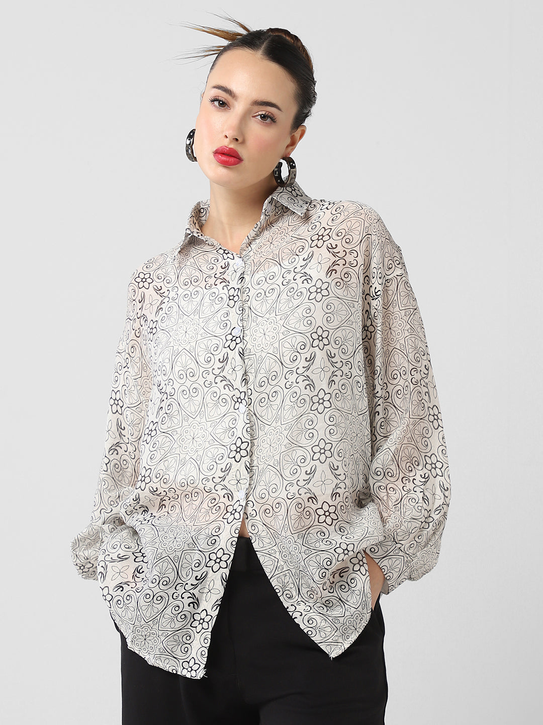 × Women's Grey Comfort Semi Sheer Printed Casual Shirt