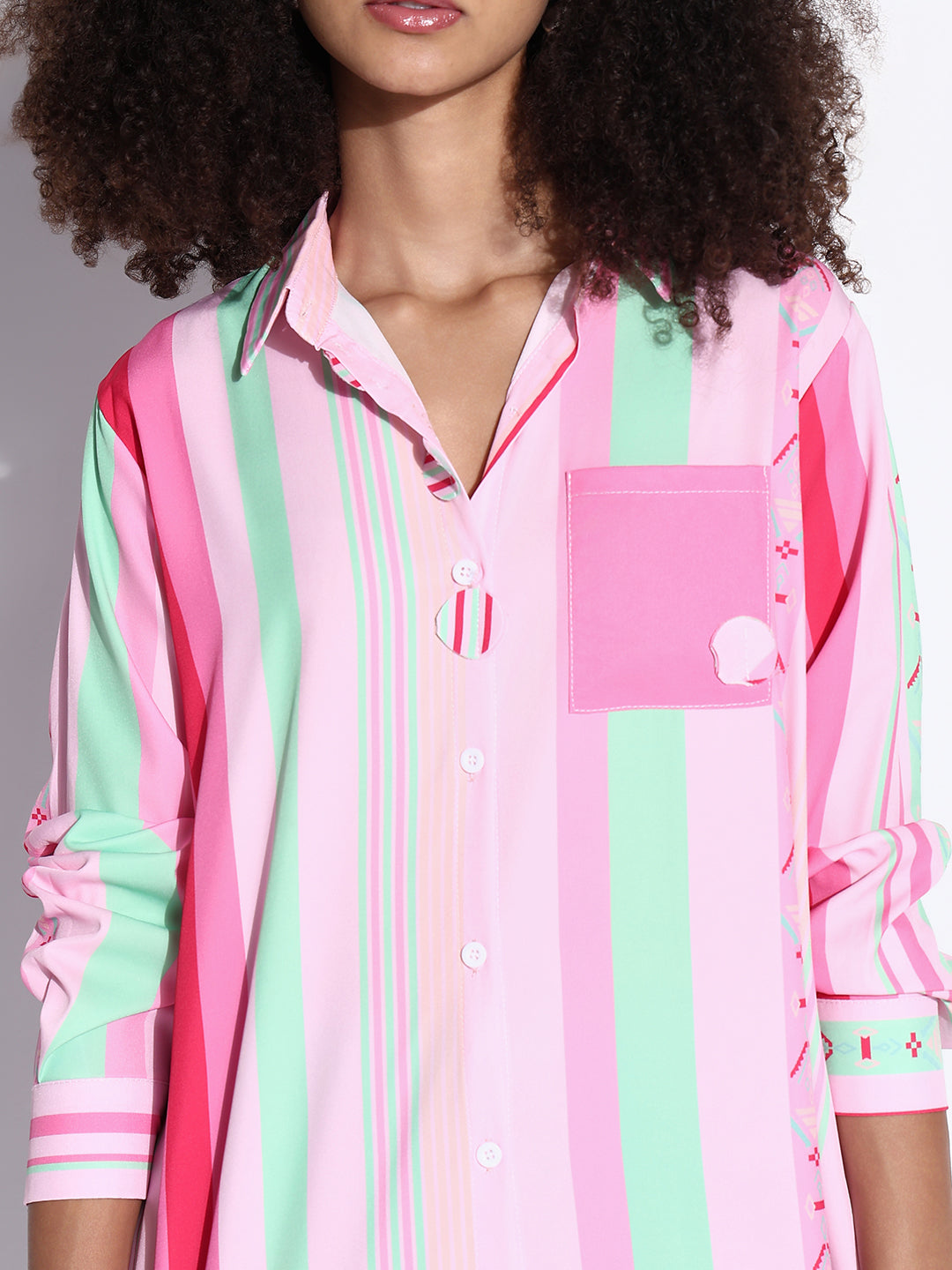 Women's Striped Pink Oversized Shirt with Chest Pocket