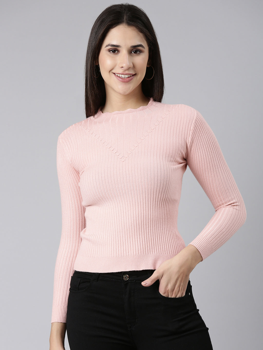 Elevate your wardrobe with our Women's High Neck Solid Pink Fitted Regular Top. Crafted from premium acrylic, this chic and versatile top is perfect for all seasons - from the crisp days of autumn to the warm afternoons of spring and summer. Designed with a fitted silhouette, full sleeves, and a sophisticated high neck, it offers both comfort and style for every casual occasion.
