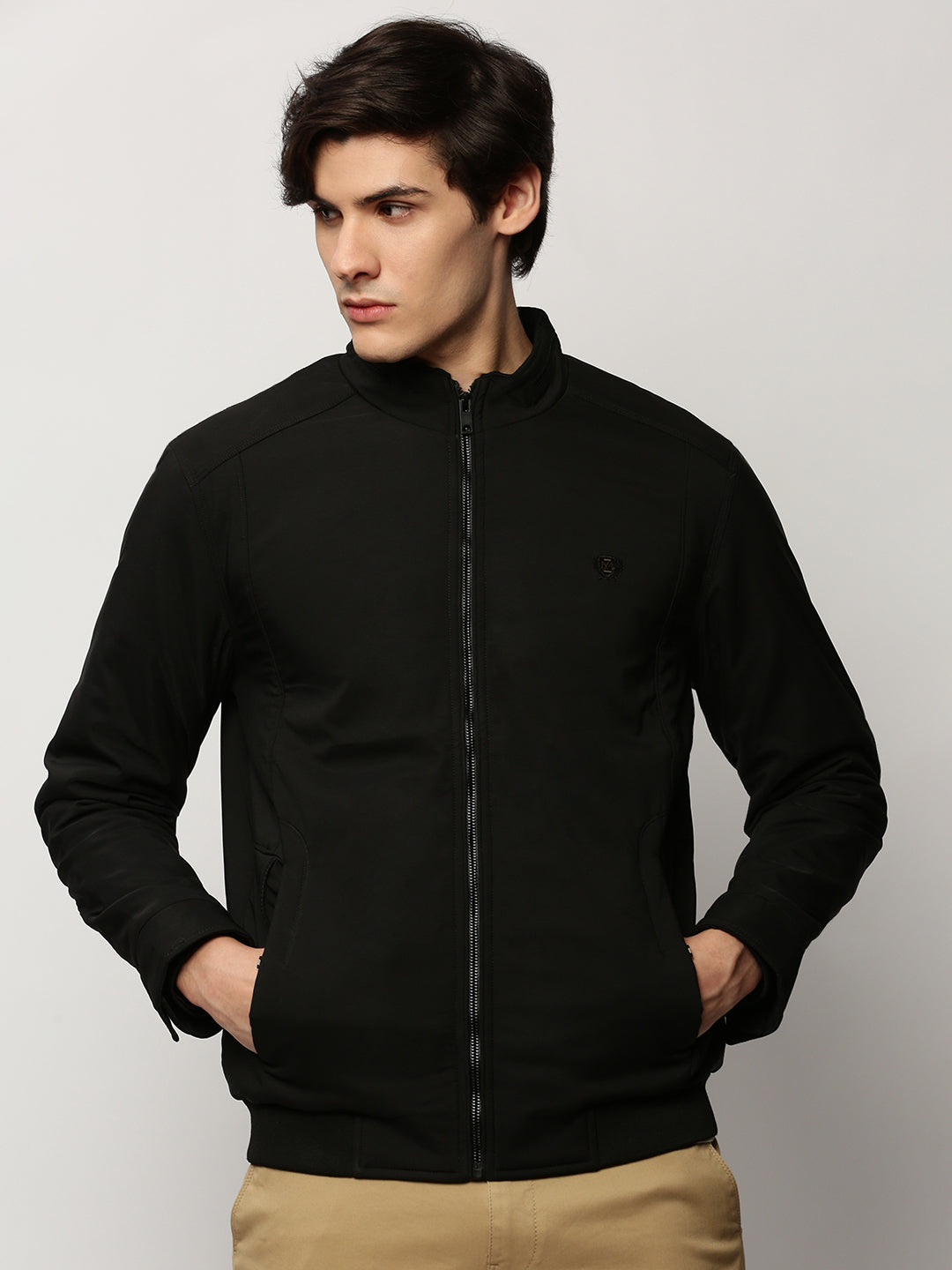 To maintain the quality of your Men Black Solid Casual Bomber Jackets, machine wash cold with like colors. Avoid bleach and tumble dry low. For best results, hang to dry and iron on low if needed to keep it looking sharp.