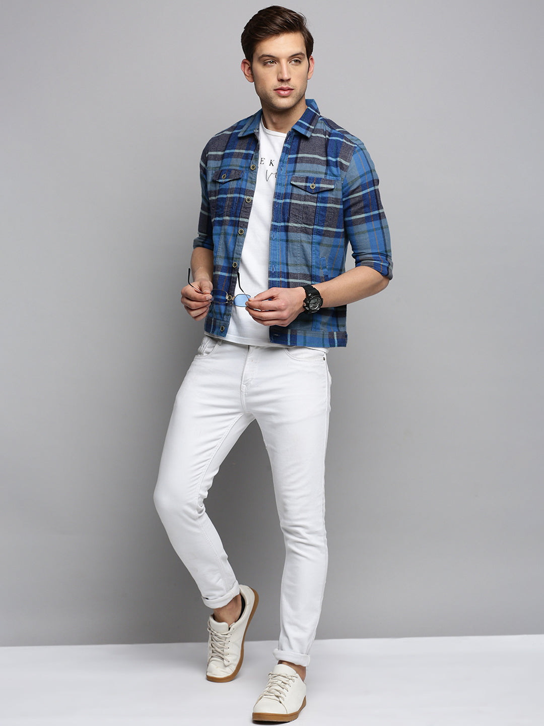 This Men Blue Checked Casual Jacket is the perfect blend of style and functionality, providing you with a trendy option that can be dressed up or down effortlessly. Its unique design will make you stand out in any crowd while ensuring you stay comfortable throughout the day.