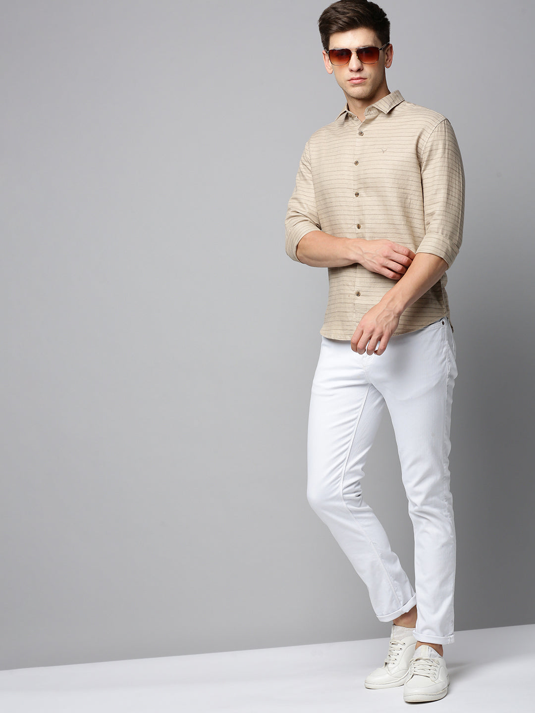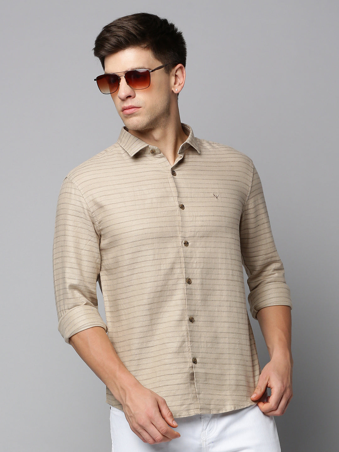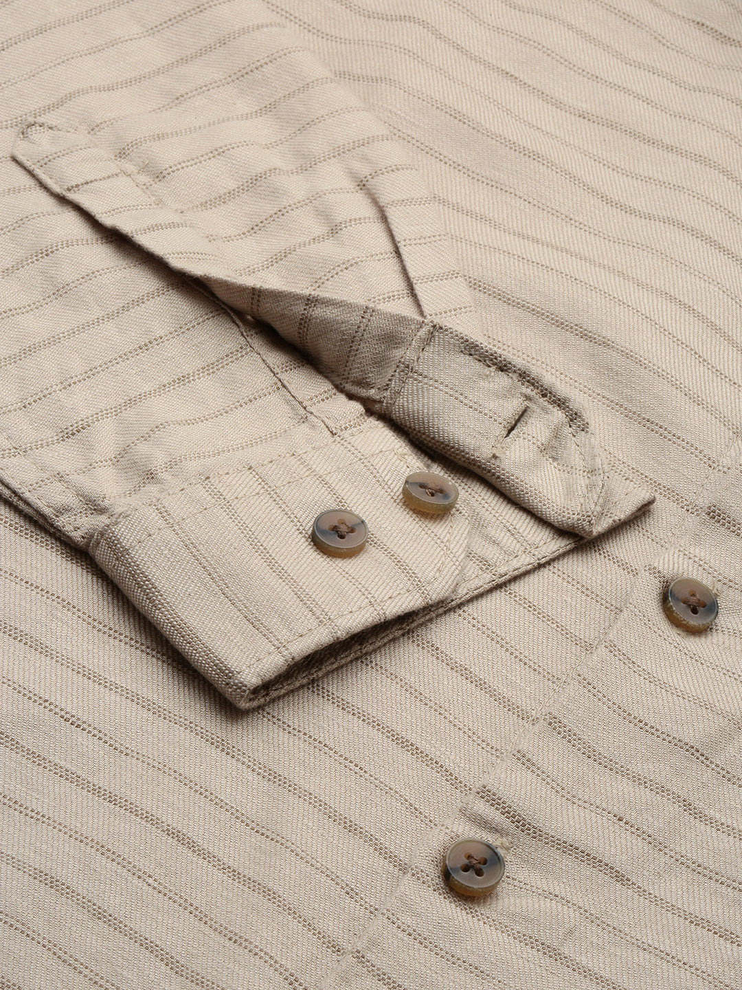 This Men's Tan Striped Casual Shirt is not just another addition to your wardrobe; it's a versatile piece that can elevate your style effortlessly. Perfect for casual outings, gatherings, or even a relaxed office setting, this shirt guarantees a polished appearance. The unique combination of comfort and fashion-forward design ensures you stand out while enjoying the ease of movement.