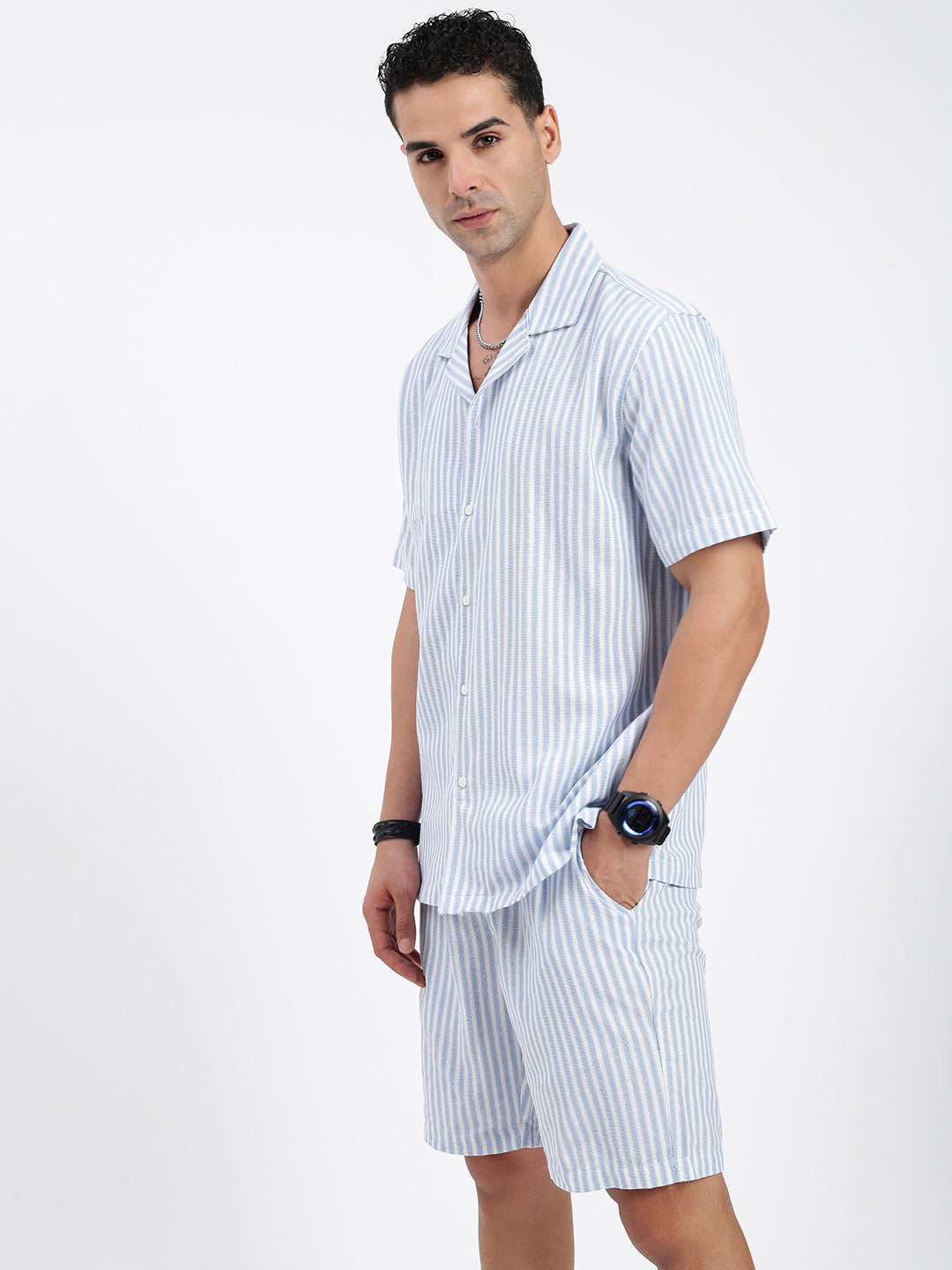 This Men Striped Blue Co Ords Set combines style with practicality, making it a must-have addition to your wardrobe. Its unique design ensures you stand out, while the comfort keeps you feeling great throughout the day.