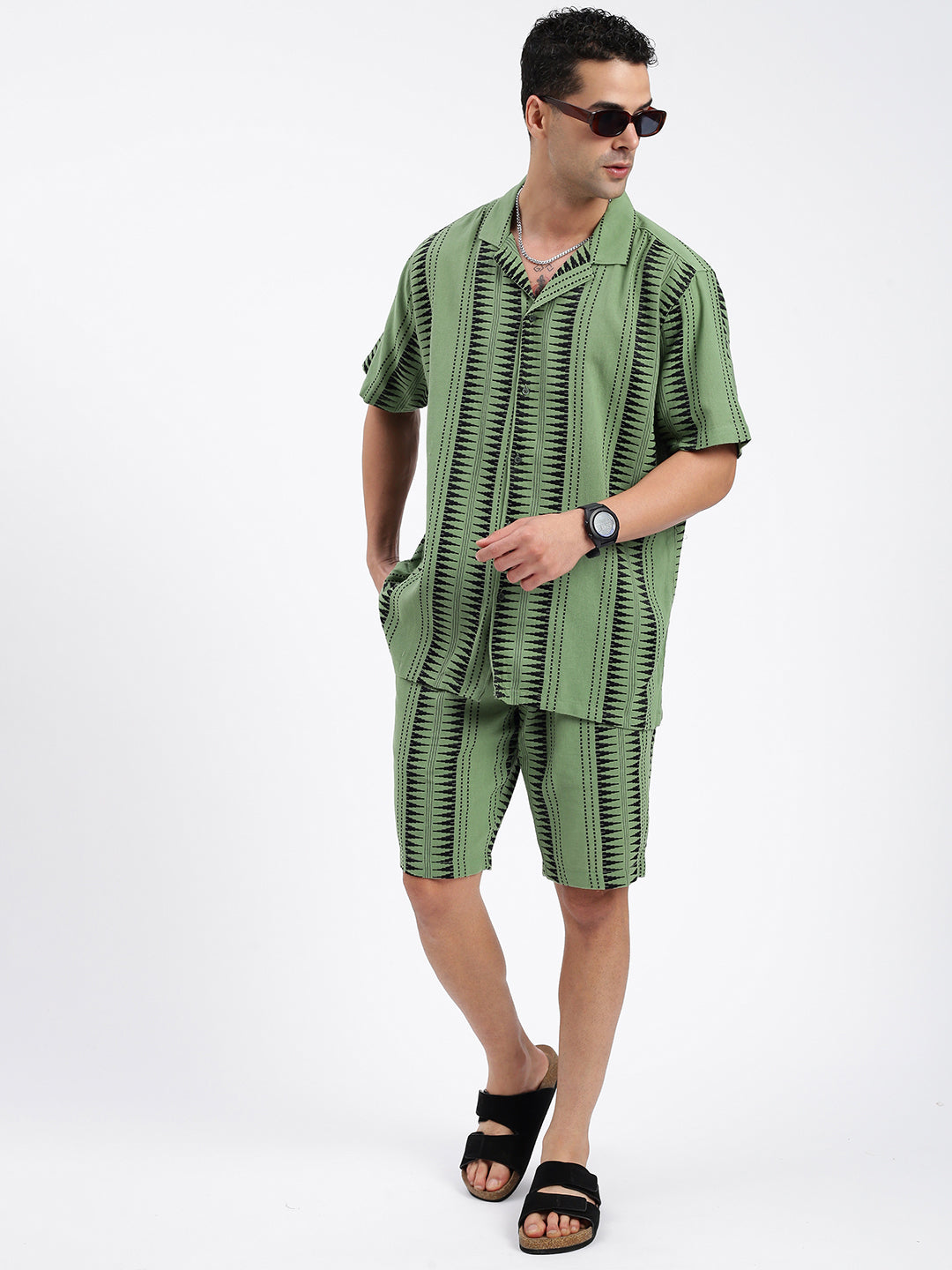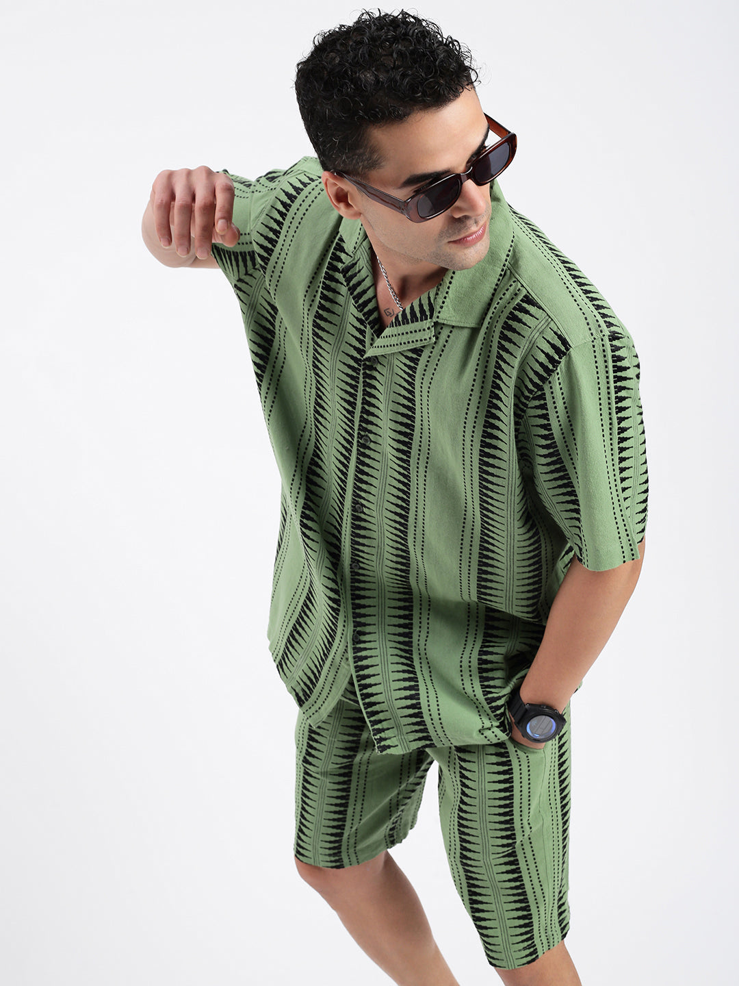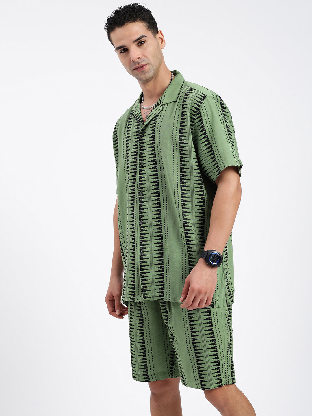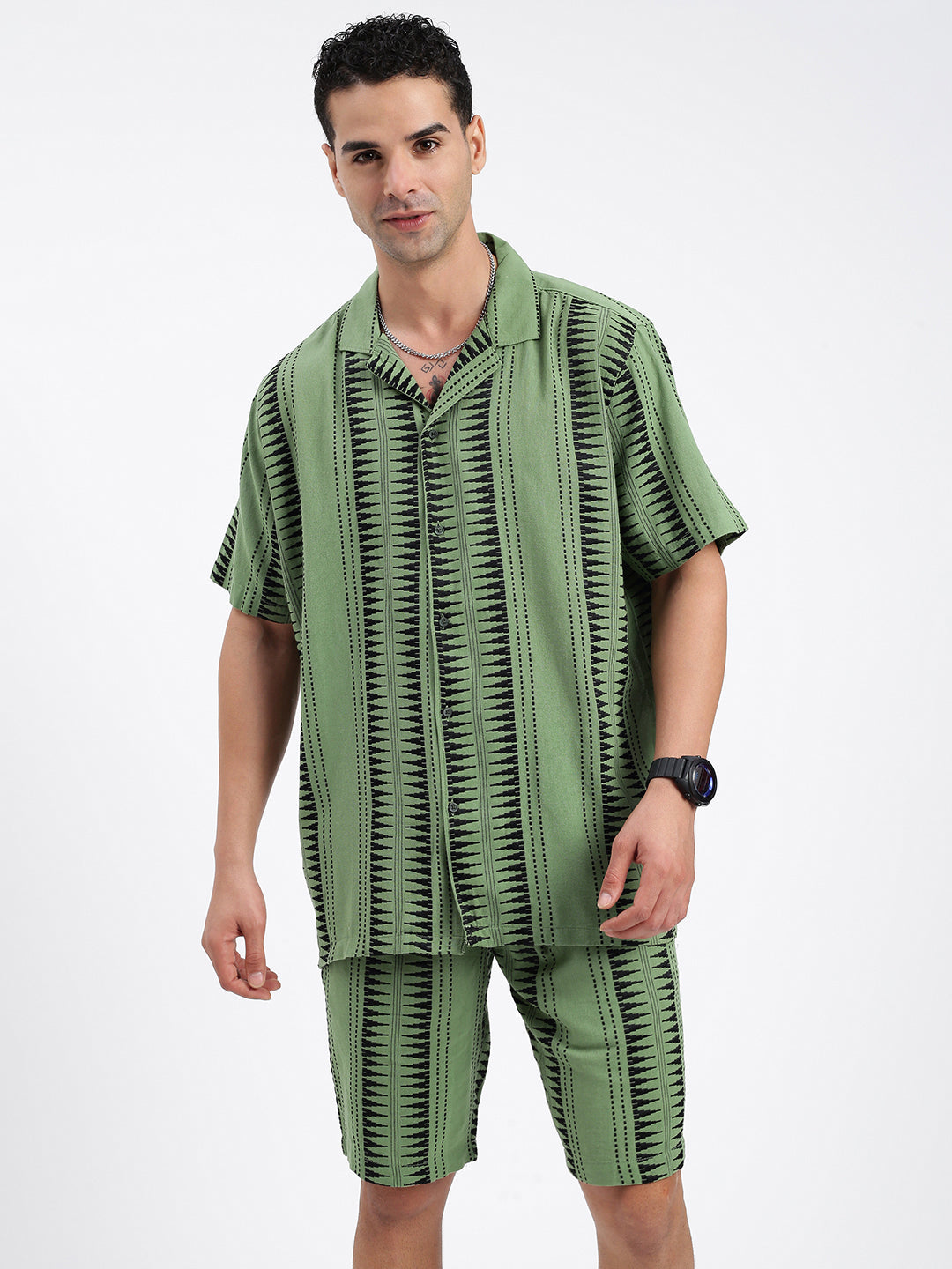 Men's Geometric Green Co-Ords Set