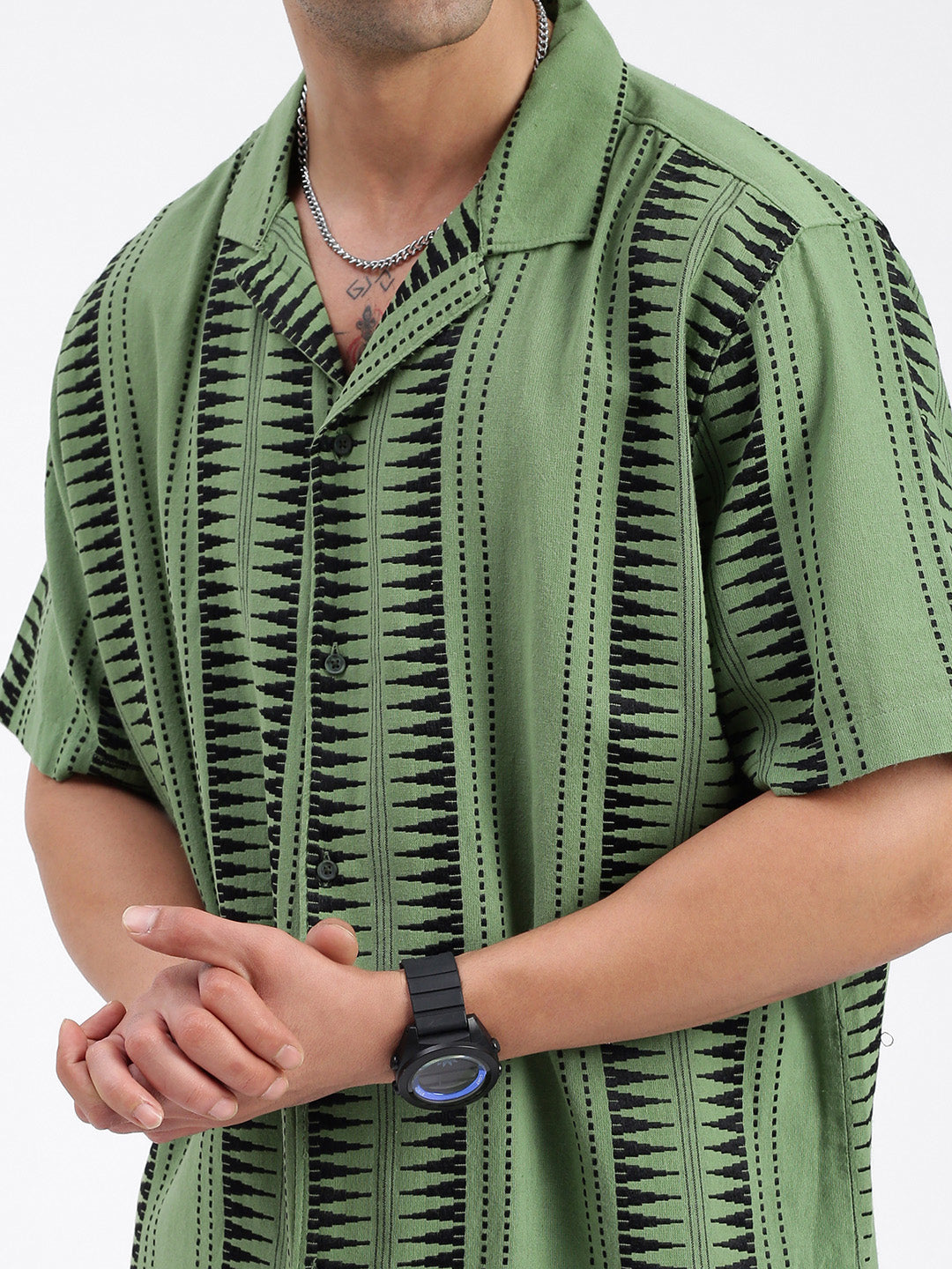 Elevate your wardrobe with the Men Geometric Green Co Ords Set, a stylish and versatile ensemble perfect for any occasion. Featuring a modern geometric design, this outfit provides both comfort and a fashion-forward look.