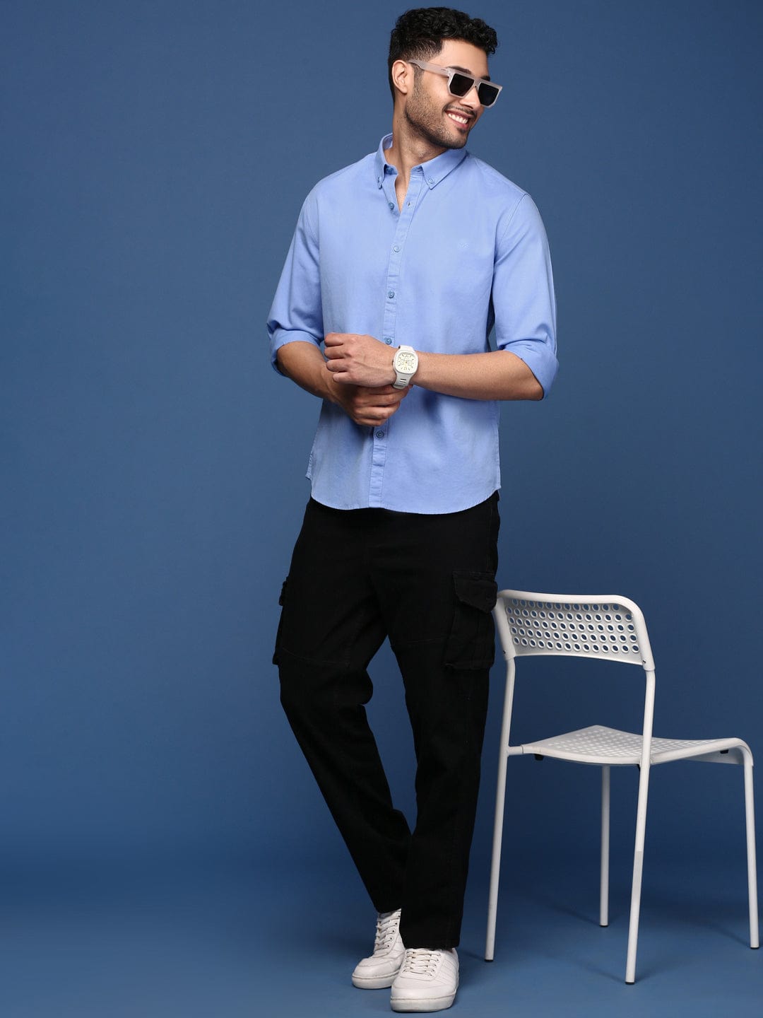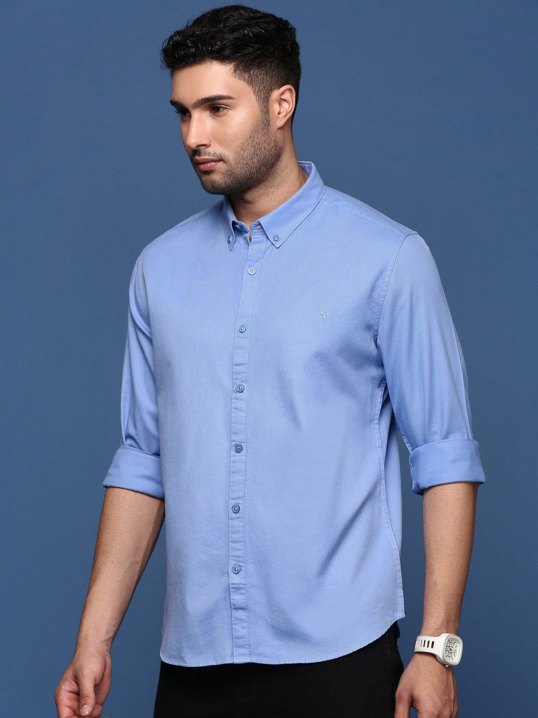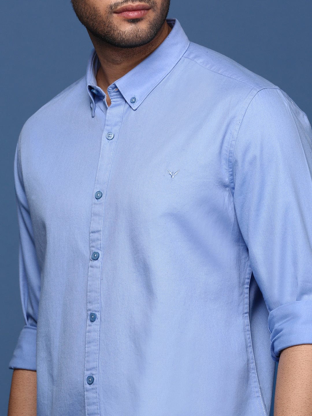 To maintain the quality of your Men Solid Blue Slim Fit Shirt, machine wash in cold water with similar colors and tumble dry low. Iron on a low setting if needed to keep it looking sharp and fresh.