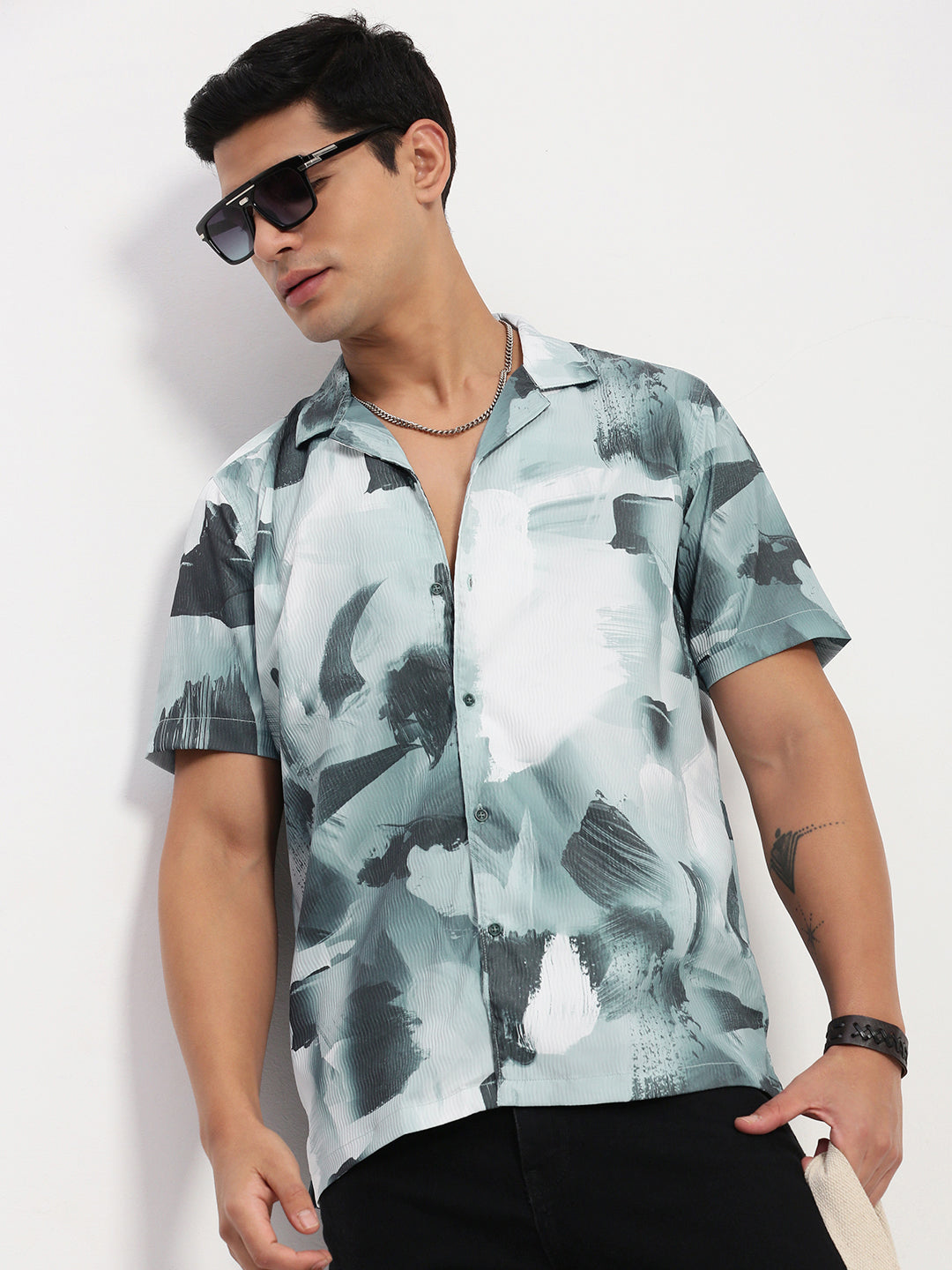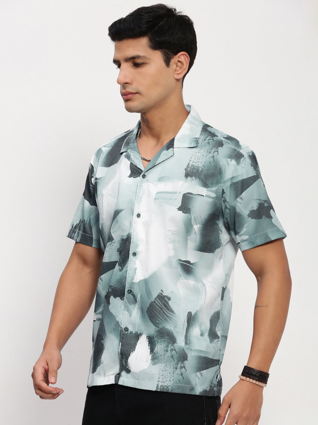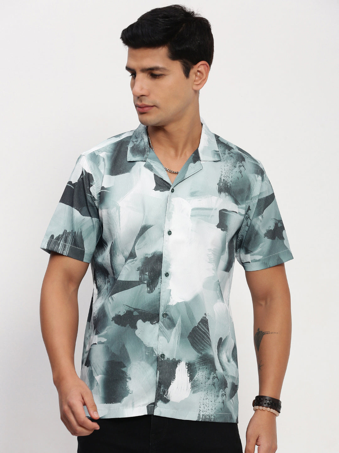 Elevate your wardrobe with the Men Blue Abstract Cuban Collar Shirt, a stylish blend of modern design and timeless comfort. This shirt features a unique abstract pattern that is perfect for making a statement while maintaining a casual vibe.
