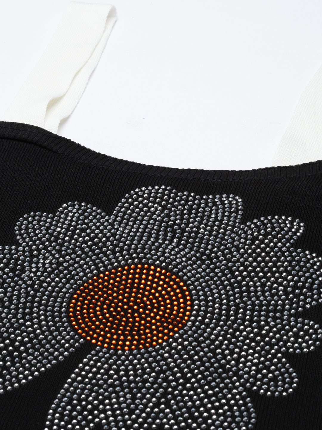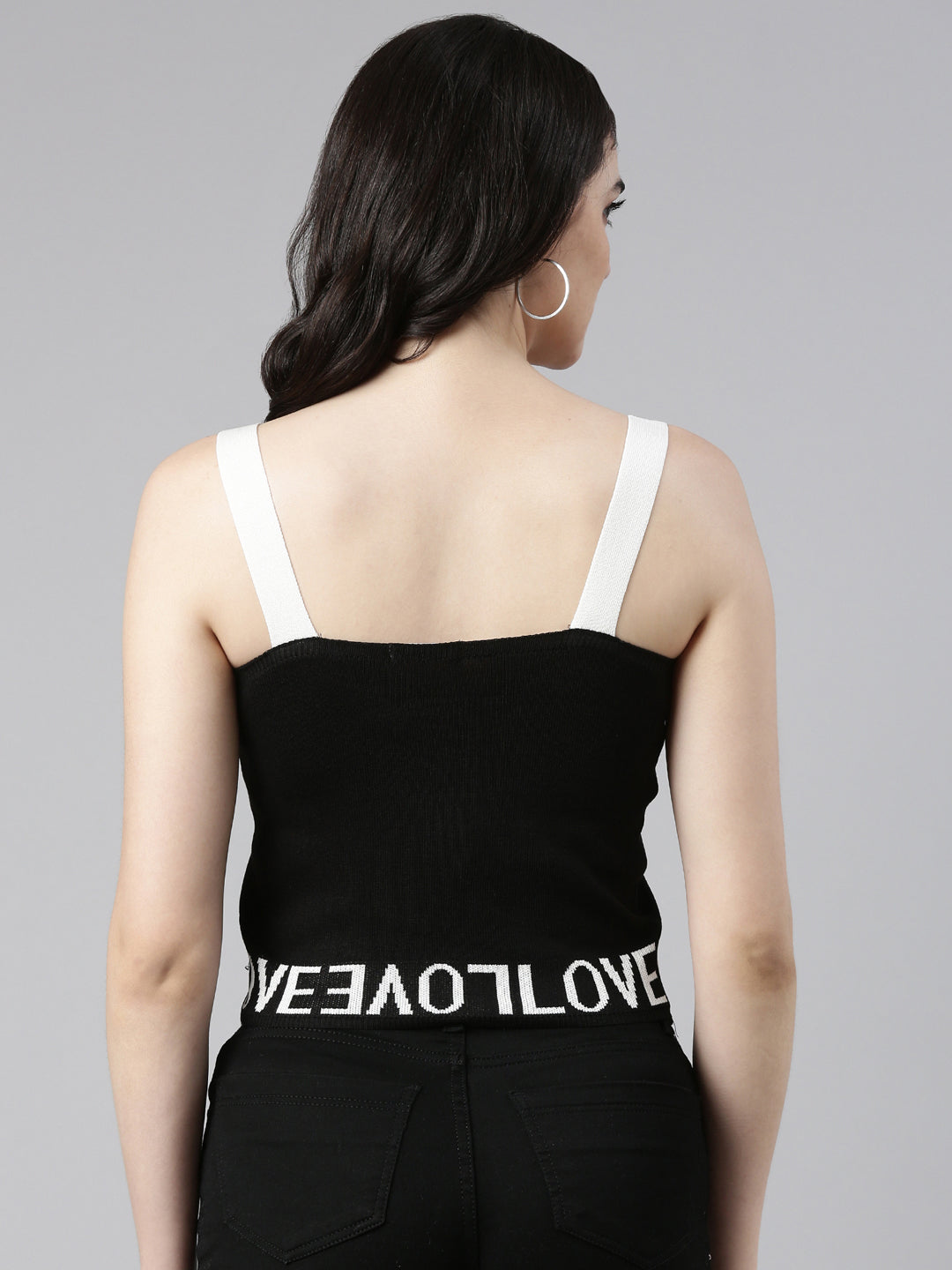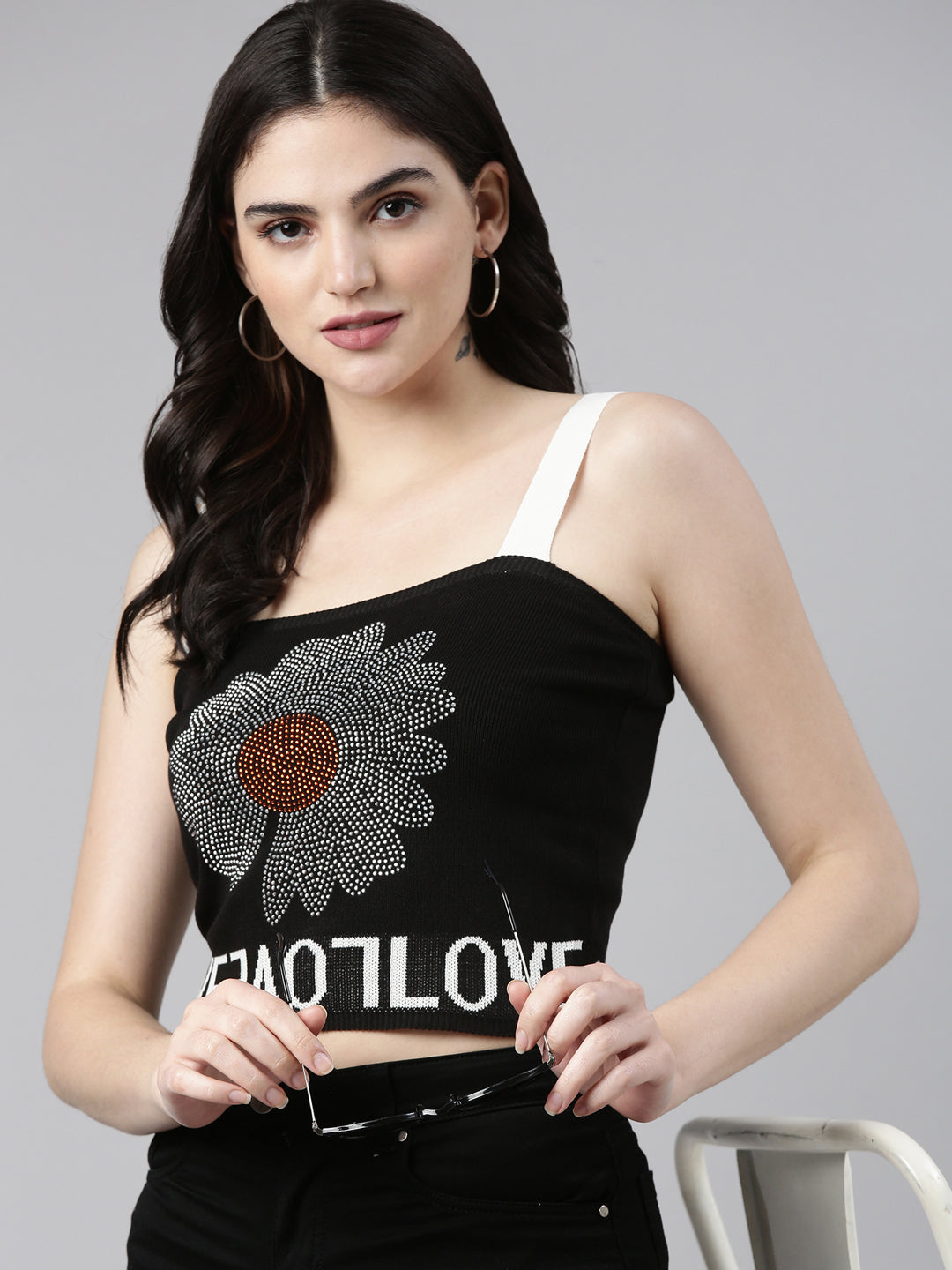 Women's Shoulder Straps Embellished Sleeveless Black Crop Tank Top