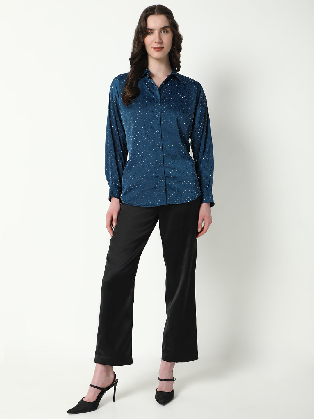 Elevate your everyday look with this shirt that seamlessly combines style and comfort. Its oversized design provides a laid-back charm, making it easy to pair with jeans or leggings for a chic ensemble. Stand out with a timeless piece that offers both versatility and elegance.