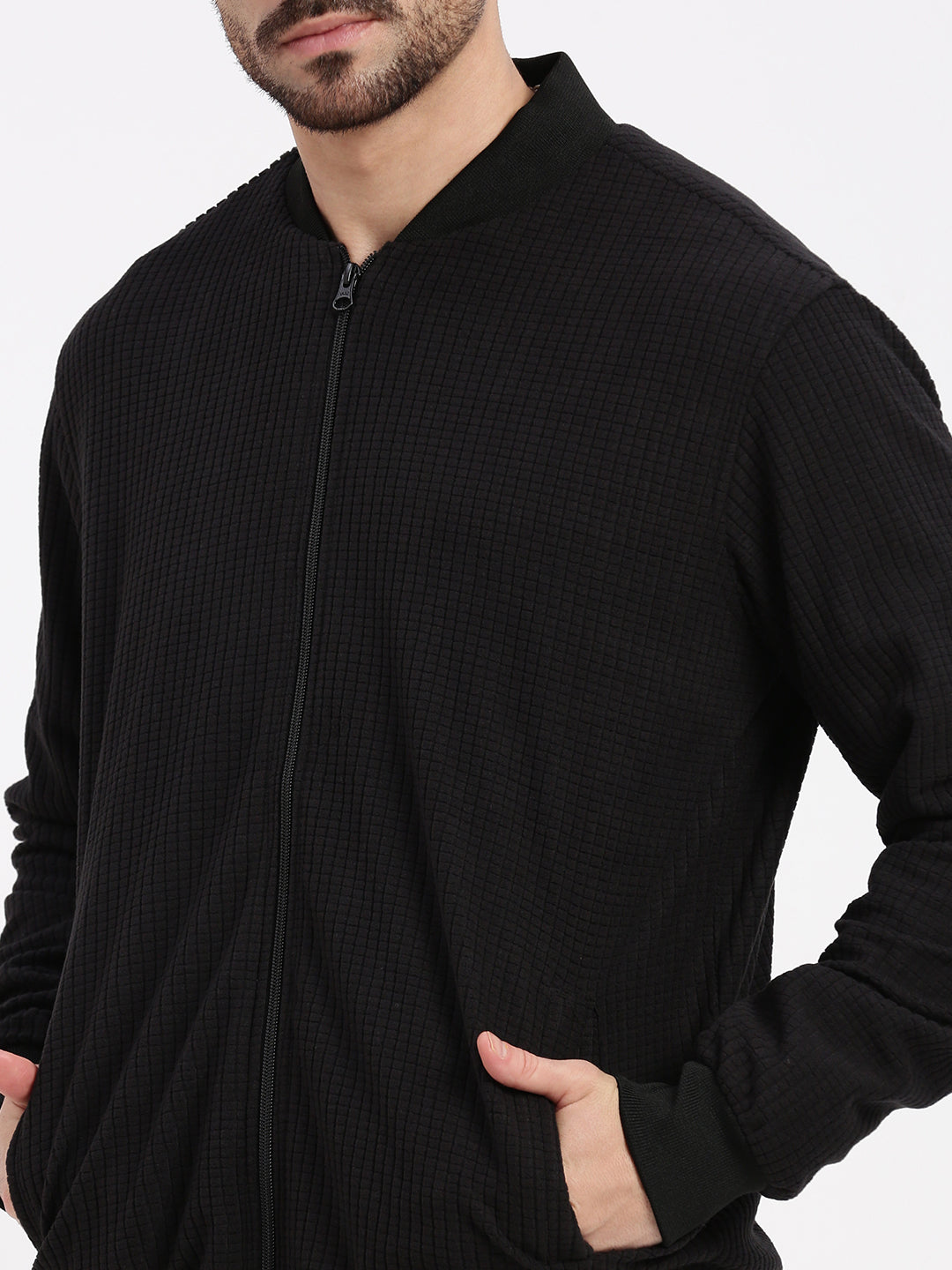 - Classic bomber design featuring ribbed cuffs and hem for a snug fit.