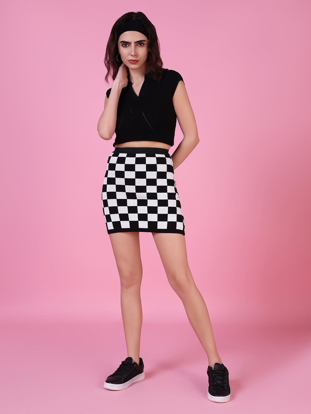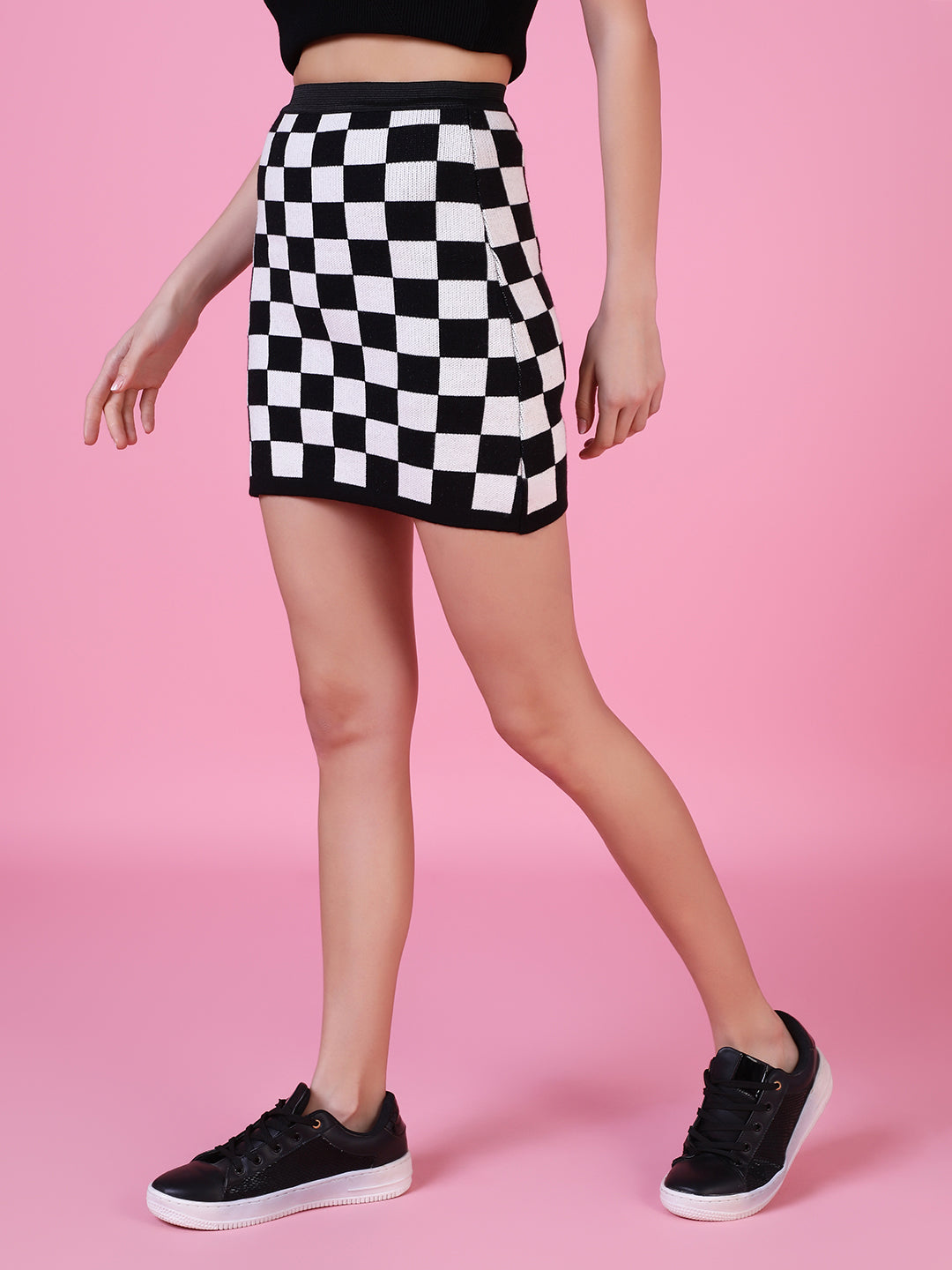 This Women Black Checked Pencil Skirt is a timeless piece that offers endless styling options. Its unique checked pattern adds a touch of personality while remaining classic, making it a must-have for any fashion-forward woman.
