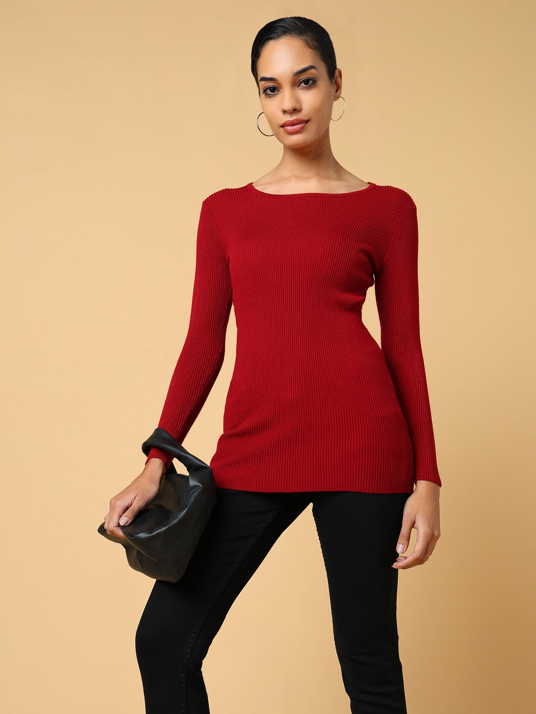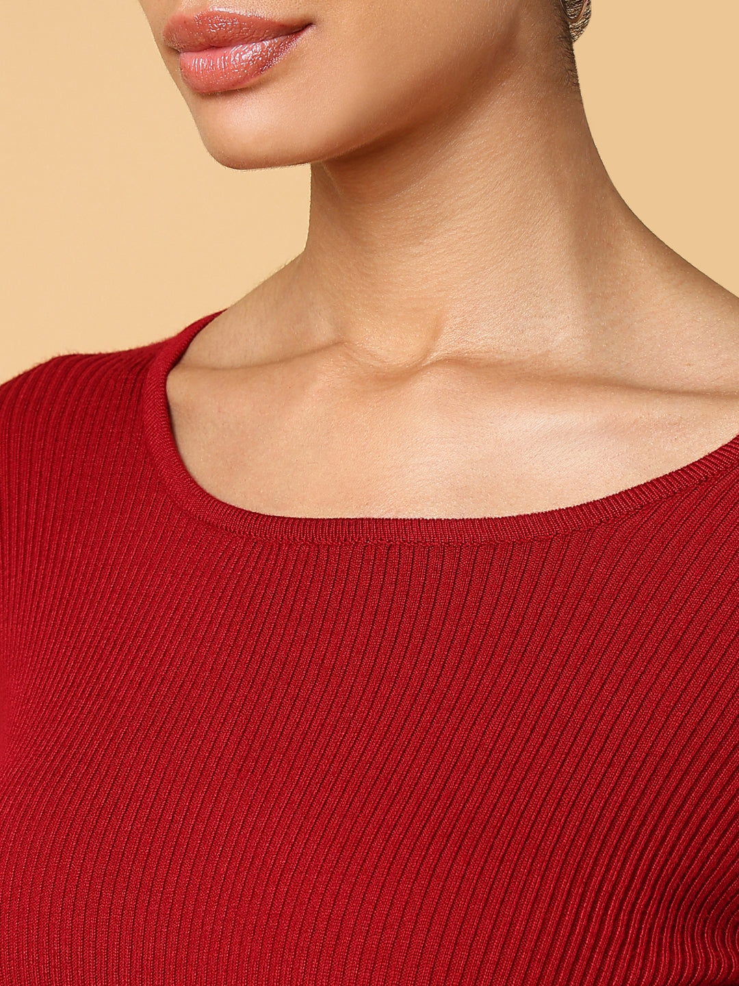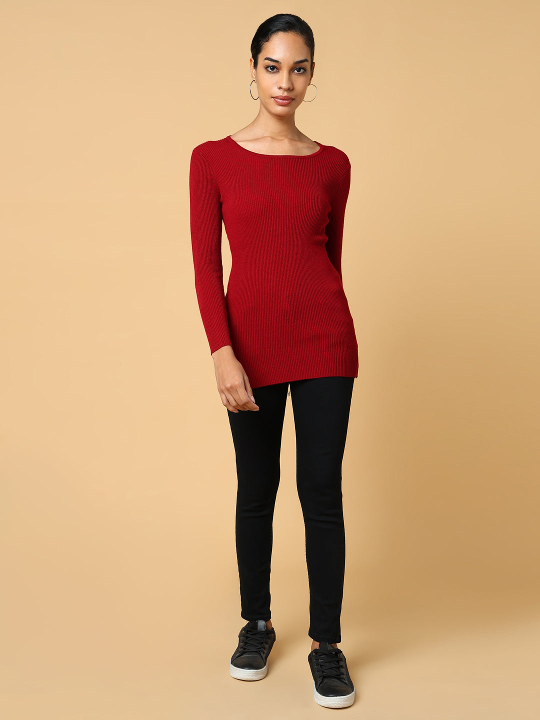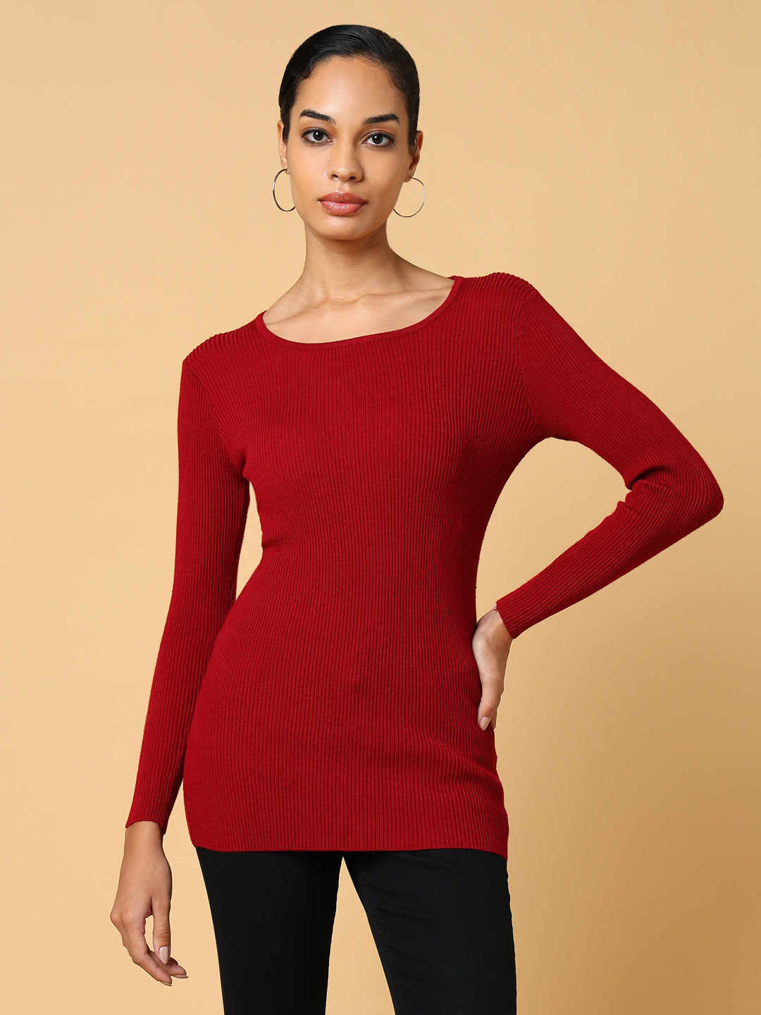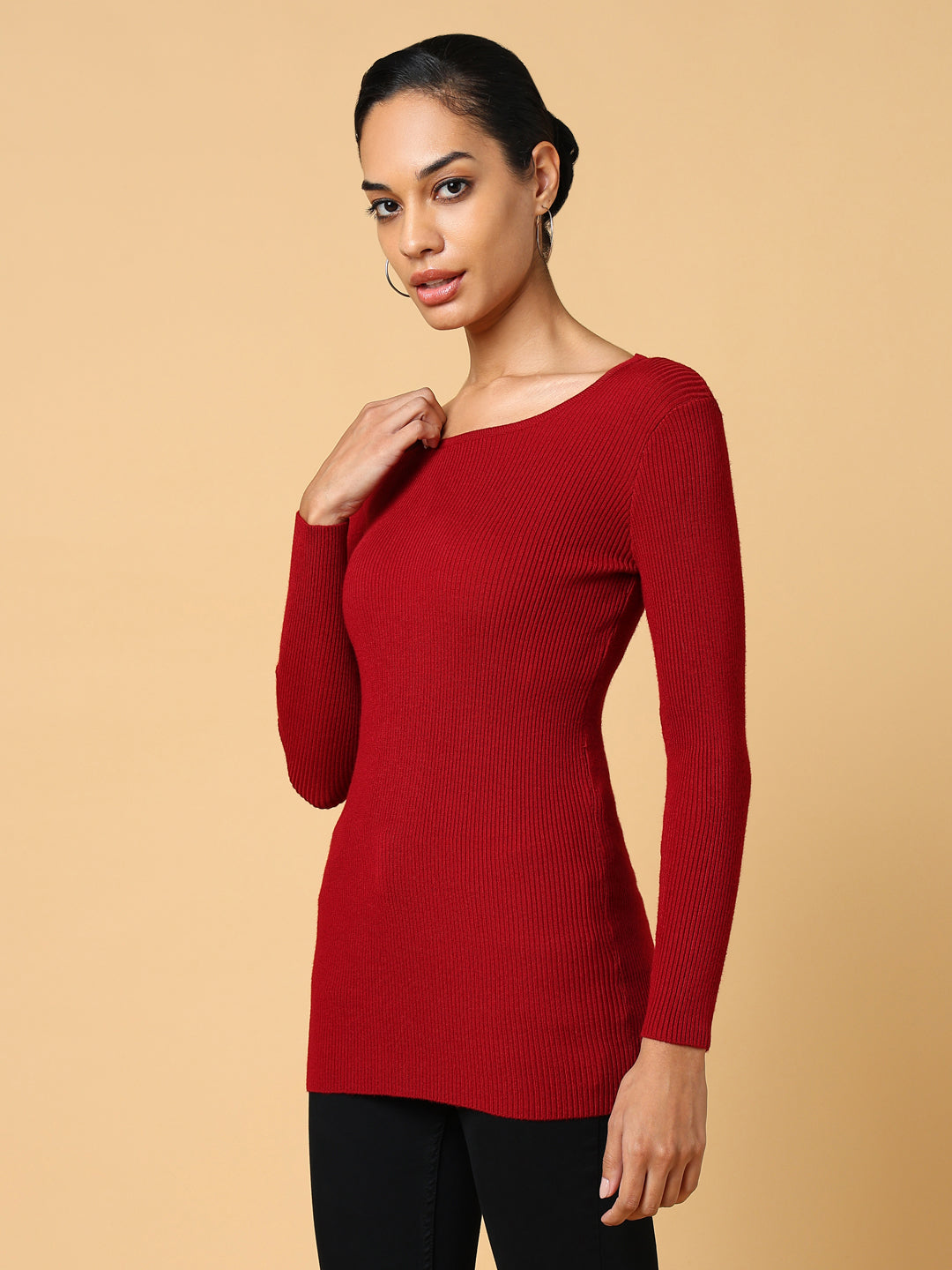 Women's Maroon Solid Boat Neck Acrylic Top