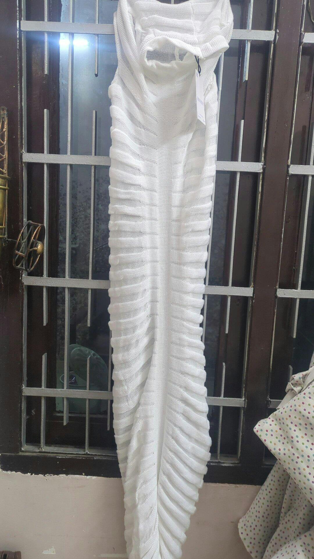 Introducing the stunning Women's Self Design White Bodycon Dress, a perfect blend of elegance and style. This exquisite piece is designed for the modern woman who wants to make a statement, whether at brunch, a summer party, or a special occasion. Crafted from high-quality Acrylic, this Bodycon dress features a sleek, semi-sheer design that beautifully hugs your curves, ensuring you look fabulous and feel confident.